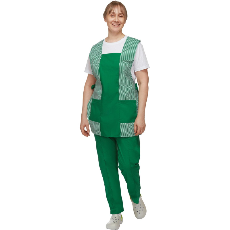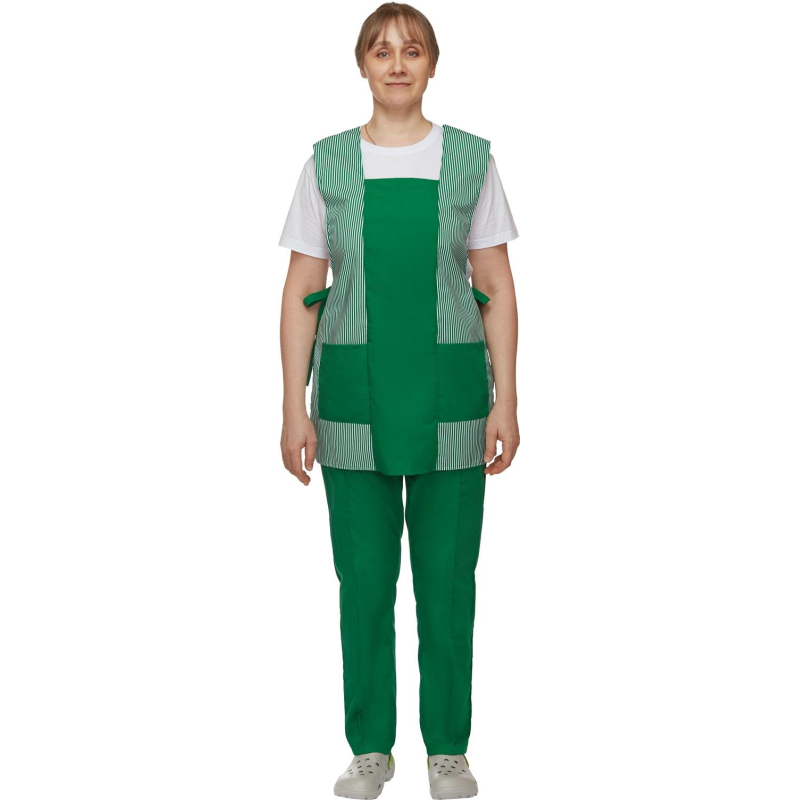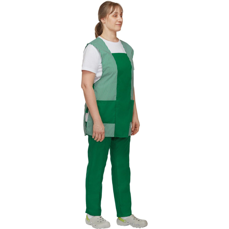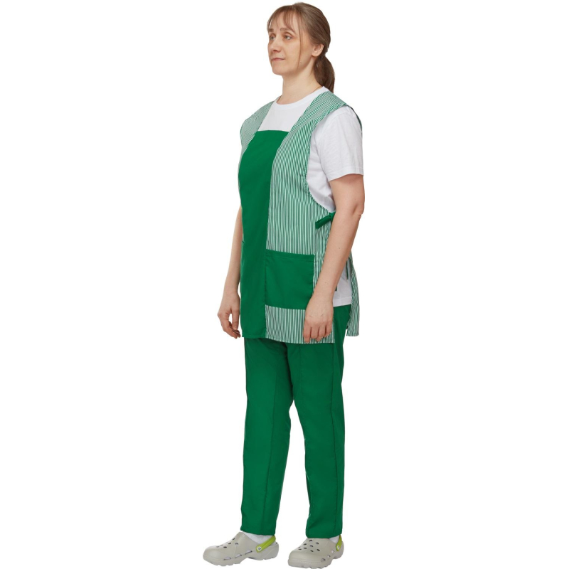 Костюм для горничных и уборщиц у08-СБР зеленый (размер 44-46, рост 170-176 см.) женский.Вех комплекта оснащен накладными карманами.Отделка: вставки контрастного цвета.Размер накладных карманов: 17x17 см.В комплект входят: фартук-сарафан и брюки.Плотность материала: 120 г/кв.м.Материал костюма: Смесовая ткань (Ти-Си) - состоящей из хлопка (35%) и полиэфира (65%). Такое соотношение натуральных и синтетических волокон является оптимальным и обеспечивает высокие потребительские качества.-Гигиенические: воздухопроницаемость, гипоаллергенность.-Механические: прочность, износостойкость.Фартук-сарафан регулируется по талии боковыми завязками. Брюки среднего объема, с отстроченной стрелкой, на резинке.Униформа для горничных и уборщиц проста в уходе, не мнется и быстро сохнет, а материал долгое время сохранит свой первоначальный, яркий цвет.Рекомендации по уходу: рекомендуется стирать при температуре не выше 40 градусов.Соответствие стандартам производства: ГОСТ 9896-88.Униформа рекомендована для сферы обслуживания, клининга, гостиничного бизнеса. Коллекция у08-СБР представлена комплектами сарафанов со светлой отделкой в тон основному цвету и однотонных брюк в бордовом, зеленом и синих цветах.