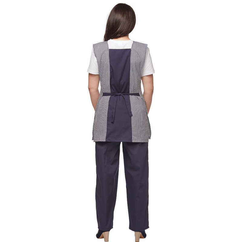 Костюм для горничных и уборщиц у08-СБР синий (размер 56-58, рост 170-176 см.) женский.Вех комплекта оснащен накладными карманами.Отделка: вставки контрастного цвета.Размер накладных карманов: 17x17 см.В комплект входят: фартук-сарафан и брюки.Плотность материала: 120 г/кв.м.Материал костюма: Смесовая ткань (Ти-Си) - состоящей из хлопка (35%) и полиэфира (65%). Такое соотношение натуральных и синтетических волокон является оптимальным и обеспечивает высокие потребительские качества.-Гигиенические: воздухопроницаемость, гипоаллергенность.-Механические: прочность, износостойкость.Фартук-сарафан регулируется по талии боковыми завязками. Брюки среднего объема, с отстроченной стрелкой, на резинке.Униформа для горничных и уборщиц проста в уходе, не мнется и быстро сохнет, а материал долгое время сохранит свой первоначальный, яркий цвет.Рекомендации по уходу: рекомендуется стирать при температуре не выше 40 градусов.Соответствие стандартам производства: ГОСТ 9896-88.Униформа рекомендована для сферы обслуживания, клининга, гостиничного бизнеса. Коллекция у08-СБР представлена комплектами сарафанов со светлой отделкой в тон основному цвету и однотонных брюк в бордовом, зеленом и синих цветах.