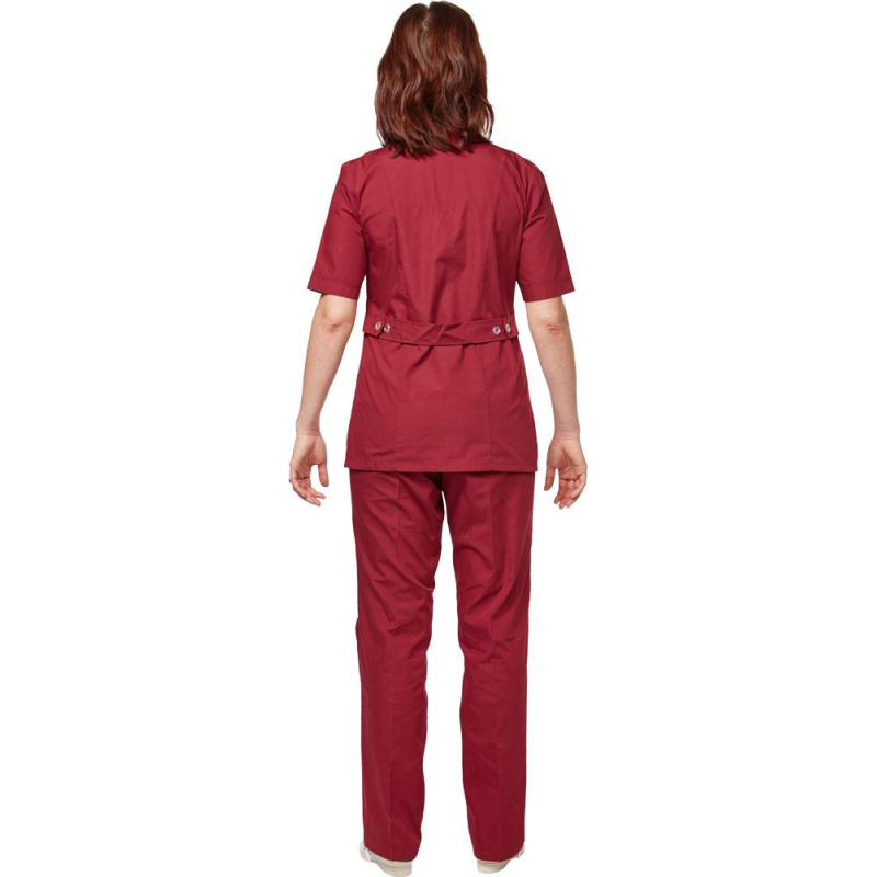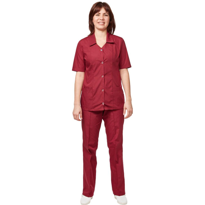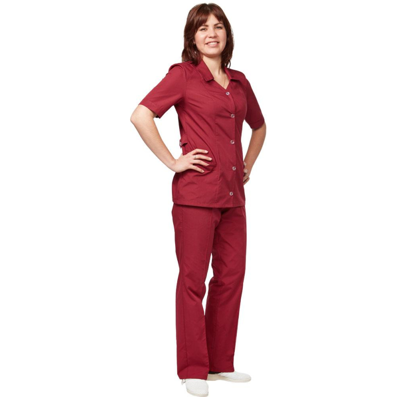 Костюм для горничных и уборщиц женский у12-КБР бордо (размер 56-58, рост 158-164) предназначен для сотрудников сферы обслуживания, клининга и гостиничного бизнеса. Этот удобный и практичный комплект состоит из рубашки с коротким рукавом и прямых брюк. Основное преимущество костюма заключается в его удобстве и долговечности. Для изготовления костюма используется смесовая ткань (Ти-Си), состоящая из 35% хлопка и 65% полиэфира. Такая комбинация материалов обеспечивает прочность и комфорт. Плотность ткани составляет 120 г/кв.м, что гарантирует хорошую износостойкость и долговечность изделия. Материал обладает отличными гигиеническими и механическими свойствами, такими как воздухопроницаемость, гипоаллергенность, прочность и износостойкость. Рубашка имеет прямой крой, который не стесняет движений, и фиксируется на пуговицах. Воротник рубашки - отложной. В нижней части рубашки расположены два накладных кармана. Брюки также выполнены в классическом прямом крое и оснащены эластичной резинкой на поясе для регулировки посадки, что делает костюм еще более удобным для длительного использования. Продукция не является изделием медицинского назначения, производится согласно требованиям ГОСТ 12.4.280-2014. Рекомендуется для работников медицинских, санитарных, лечебно-профилактических и других организаций или учреждений здравоохранения: высший, средний и младший персонал (врачи, медицинские сестры, акушеры, техники, лаборанты, массажисты, фармацевты, сиделки, санитарки и т.д.), административно-хозяйственной группы (заведующие, кладовщики, кухонный персонал и т.д.). Цвет на изображении товара может отличаться от оригинала из-за особенностей цветопередачи монитора.