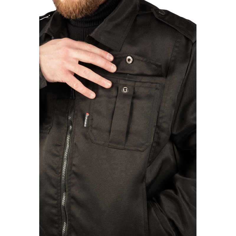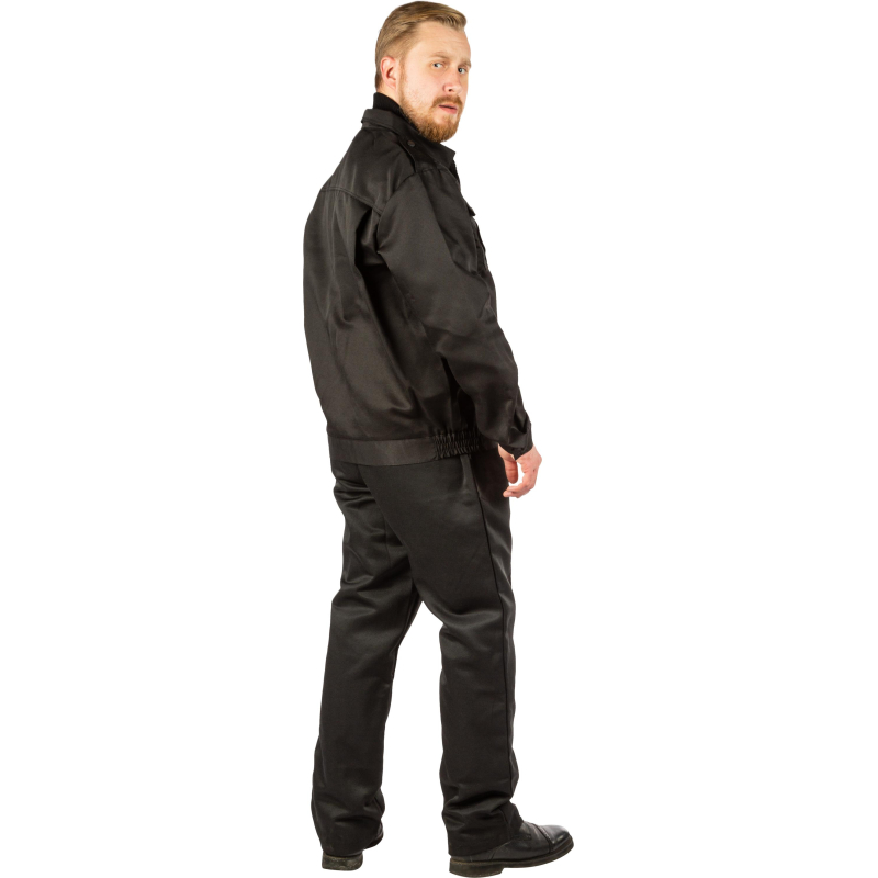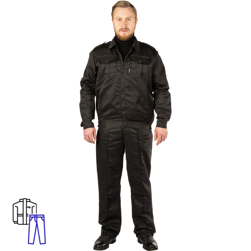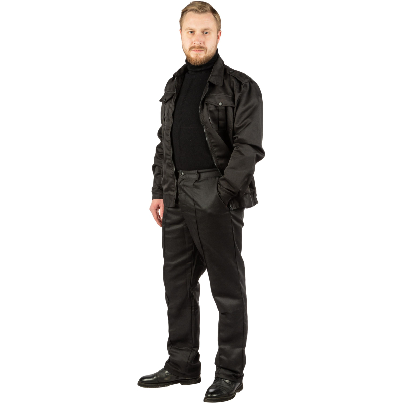 Костюм охранника Альфа состоит из куртки и брюк. Изготовлен из смесовой ткани плотностью 190 г/кв.м (20% хлопок, 80% полиэфир), цвет черный. Куртка с застежкой на молнию, с погонами. На груди два накладных кармана с клапанами на кнопках, два нижних прорезных кармана. Брюки классического кроя, отстроченные стрелки, шлевки под широкий ремень. Размер 56-58, рост 182-188. В коллекции костюмов для охранников Альфа представлены комплекты куртка и брюки в двух цветовых решениях: камуфляж город в серых тонах и однотонном черном цвете. ЗАКЛЮЧЕНИЕ МИНПРОМТОРГА РФ МОЖЕТЕ СКАЧАТЬ ЗДЕСЬ: