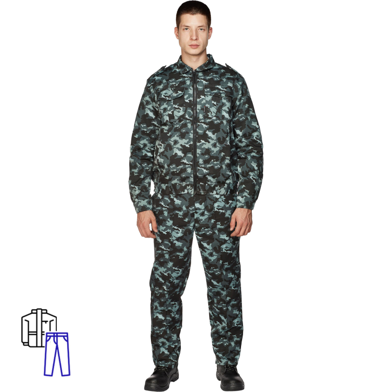 Костюм охранника мужской модели Альфа состоит из куртки и брюк выполнен в цвете хаки серый. Состоит из брюк и куртки. Размер 56-58, рост 170-176. Изготовлен из смесовой ткани - 20% хлопок, 80% полиэфир, плотностью 190 г/кв.м. Куртка с застежкой на молнию, с погонами. На груди два накладных кармана с клапанами на кнопках, два нижних прорезных кармана. Брюки классического кроя, отстроченные стрелки, шлевки под широкий ремень. Соответсвтует стандартам ГОСТ 12.4.280-2014 , ТР ТС 019/2011. В коллекции костюмов для охранников Альфа представлены комплекты куртка и брюки в двух цветовых решениях: камуфляж город в серых тонах и однотонном черном цвете. ЗАКЛЮЧЕНИЕ МИНПРОМТОРГА РФ МОЖЕТЕ СКАЧАТЬ ЗДЕСЬ: