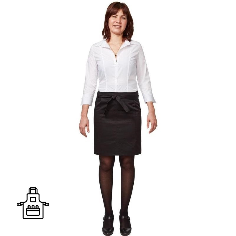 Фартук официанта короткий изготовлен из ткани форвард (состав: 65% полиэстер + 35% хлопок), плотностью 210 г/кв.м. Завязывается по талии поясом. Без разреза, с одним накладным карманом. Размеры фартука: 115x45. Цвет: черный. В коллекции представлены фартуки для официантов в черном и коричневом цветах, варианты длины: короткий (45 см), средний (75 см) и длинный (95 см). Могут использоваться для парикмахеров.