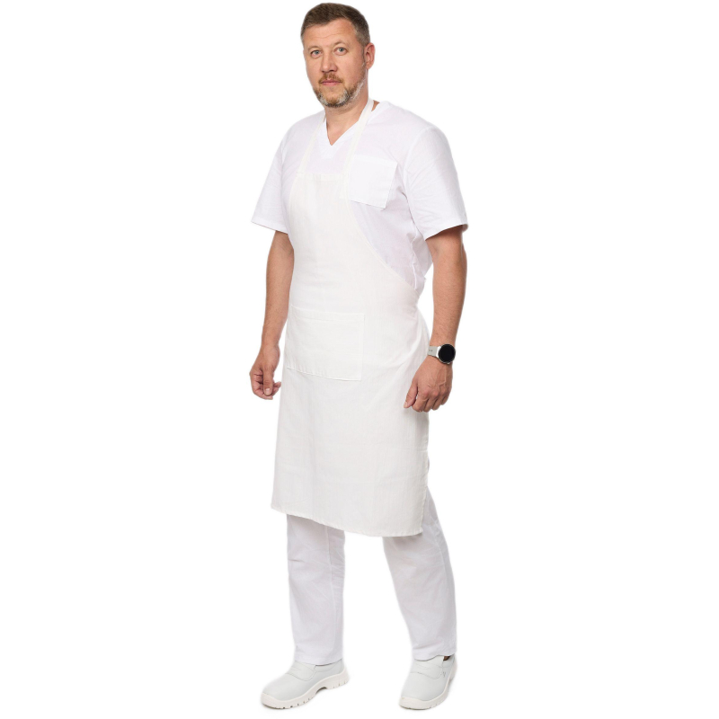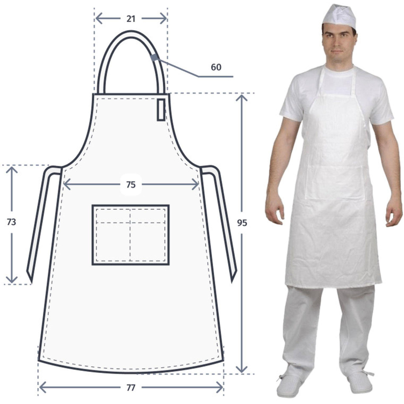 Фартук для повара белый с передними накладными карманами. Универсальное изделие, подходящее как для мужчин, так и для женщин. Он вписывается в рабочую обстановку кухни ресторана или кафе, а также подходит для работы в производственных помещениях, на предприятиях общественного питания. Изготовленный из бязи (100% хлопок), фартук обеспечивает надежную защиту и комфорт в течение всего рабочего дня. Передний накладной карман добавляет удобства, позволяя хранить необходимые мелочи под рукой. Тесьма для завязывания, притачанная к боковым углам, обеспечивает надежную фиксацию и легкость регулировки. Фартук сшит по ГОСТу, что гарантирует его высокое качество и соответствие всем необходимым стандартам безопасности и гигиены. Плотность: 142 г/кв.м. Нормативная документация ГОСТ 12.4.029-76, ТР ТС 019/2011. Изготовленный из бязи (100% хлопок), фартук обеспечивает надежную защиту и комфорт в течение всего рабочего дня. Передний накладной карман добавляет удобства, позволяя хранить необходимые мелочи под рукой. Тесьма для завязывания, притачанная к боковым углам, обеспечивает надежную фиксацию и легкость регулировки. Фартук сшит по ГОСТу, что гарантирует его высокое качество и соответствие всем необходимым стандартам безопасности и гигиены. Плотность: 142 г/кв.м. Нормативная документация ГОСТ 12.4.029-76, ТР ТС 019/2011.