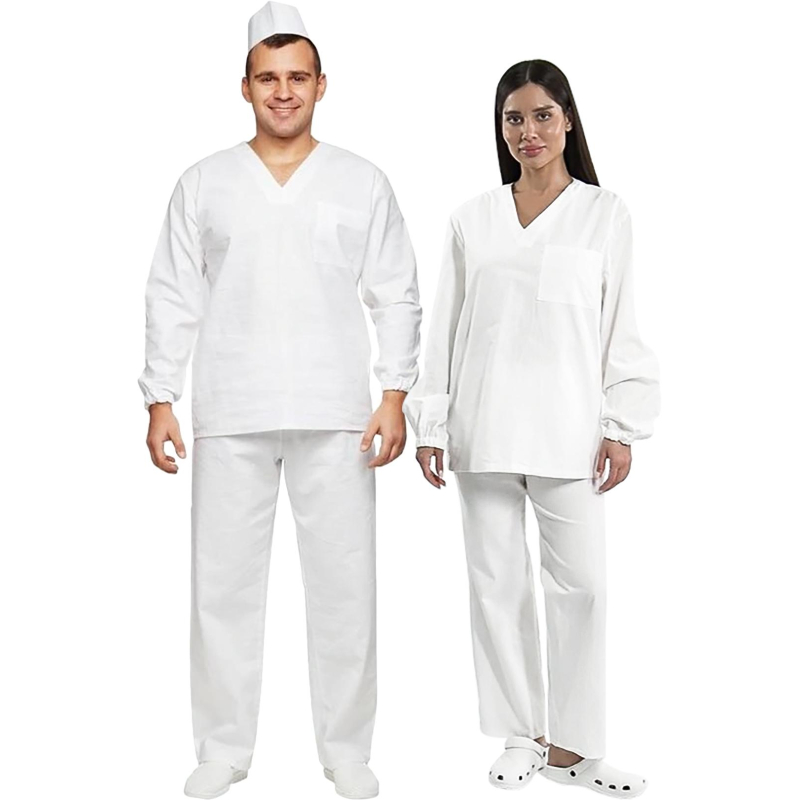 Костюм пекаря универсальный с длинным рукавом состоит из куртки и брюк. Куртка свободного покроя имеет нагрудный накладной карман. Брюки с поясом на резинке. Костюм, предназначенный для использования в производственных цехах, выполнен из бязи плотностью 142 г/кв.м, цвет белый. Размер 48-50, рассчитан на рост 182-188 см. Температурный режим стирки - не выше 40 градусов. Коллекция униформы для пекарей у05 представлена костюмами куртка с брюками у05-КБР и халатами с длинным рукавом у05-ХЛ. Законодательные и технические документы