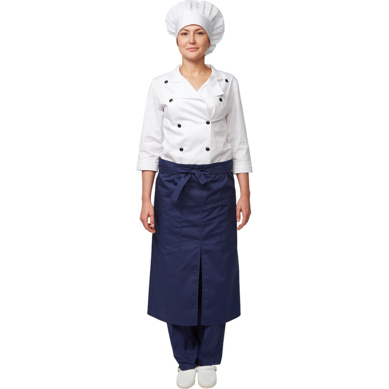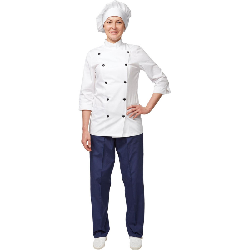 Куртка двубортная прямого силуэта, с двусторонней застежкой на пуговицы, что позволяет застегивать куртку как на мужскую, так и на женскую сторону. Рукава три четверти с манжетами, воротник стойка, два боковых накладных кармана. Для улучшения посадки в районе ключиц внутренние пуговицы. Ткань Ти-Си: 65% полиэстер, 35% хлопок. Плотность - 115-120 г/кв.м. Рекомендована стирка при температуре не выше 40 градусов.К куртке повара у14-КУ подходят брюки у14-БР, представленные в коллекции поварской униформы у14 в двух цветах: синий и белый. Также в коллекции есть фартук синего цвета.