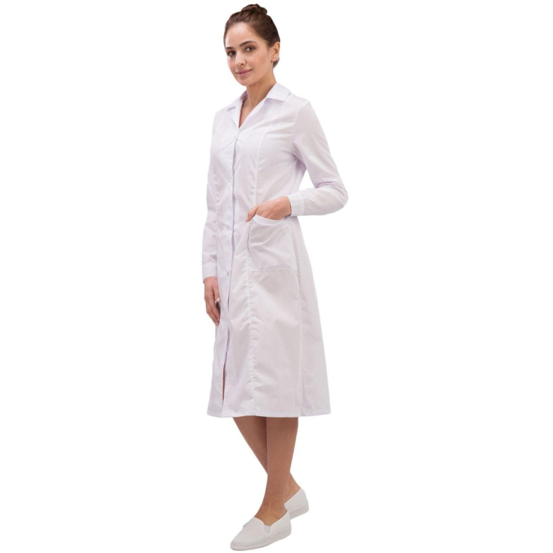 Халат женский Медик м04-ХЛ, цвет белый, (размер 60-62, рост 170-176) изготовлен из ткани белого цвета, состав - 65% полиэфира и 35% хлопка. Ти-Си - материал, приятный на ощупь, гигиеничен и долговечен. Не мнется, легко и быстро стирается, быстро сохнет. Долго сохраняет свой первоначальный яркий цвет. Ткань дышит, благодаря входящему в состав хлопку, имеет повышенный срок службы и проста в уходе, благодаря полиэфиру. Классический медицинский халат застегивается на пуговицы. Рукав длинный. Отложной воротник, два боковых кармана. Униформа рекомендована для сферы красоты и здоровья: медицинские учреждения, центры. Коллекция м04 представлена халатами м04-ХЛ как в женской, так и в мужской линейке. Продукция не является изделием медицинского назначения, производится согласно требованиям ГОСТ 12.4.280-2014. Рекомендуется для работников медицинских, санитарных, лечебно-профилактических и других организаций или учреждений здравоохранения: высший, средний и младший персонал (врачи, медицинские сестры, акушеры, техники, лаборанты, массажисты, фармацевты, сиделки, санитарки и т.д.), административно-хозяйственной группы (заведующие, кладовщики, кухонный персонал и т.д.). Изделия отшиты из белой ткани, но с сиреневым оттенком, связано это со спецификой отбеливания, чтобы ткань не желтила. Цвет стабилизируется после нескольких стирок.