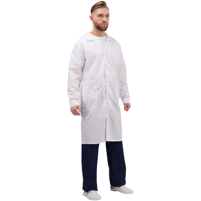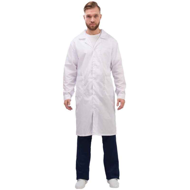 Халат мужской Медик м04-ХЛ, цвет белый, (размер 44-46, рост 182-188) белого цвета с отложным воротником. Классическая модель изготовлена из смесовой ткани Ти-Си плотностью 120 г/кв.м, состоящей на 65% из полиэфира и на 35% из хлопка. Не мнется, легко и быстро стирается, быстро сохнет. Долго сохраняет свой первоначальный яркий цвет. Ткань дышит, благодаря входящему в состав хлопку, имеет повышенный срок службы и проста в уходе, благодаря полиэфиру. Застежка центральная, на пуговицах; на лицевой стороне расположены два накладных кармана. Униформа рекомендована для сферы красоты и здоровья: медицинские учреждения, центры. Коллекция м04 представлена халатами м04-ХЛ как в женской, так и в мужской линейке. Продукция не является изделием медицинского назначения, производится согласно требованиям ГОСТ 12.4.280-2014. Рекомендуется для работников медицинских, санитарных, лечебно-профилактических и других организаций или учреждений здравоохранения: высший, средний и младший персонал (врачи, медицинские сестры, акушеры, техники, лаборанты, массажисты, фармацевты, сиделки, санитарки и т.д.), административно-хозяйственной группы (заведующие, кладовщики, кухонный персонал и т.д.). Изделия отшиты из белой ткани, но с сиреневым оттенком, связано это со спецификой отбеливания, чтобы ткань не желтила. Цвет стабилизируется после нескольких стирок.