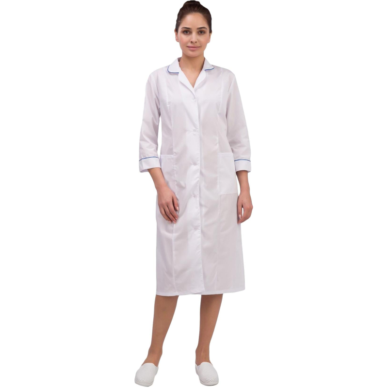 Халат женский м02-ХЛ. Размер: 60-62. Рост: 170-176. Халат с центральной застежкой на пуговицы, отложным воротником и двумя нижними накладными карманами. Халат предназначен для защиты от общих производственных загрязнений. Рукав 3/4. Ткань: Ти-Си (состав: 65% - полиэфир, 35% - хлопок). Плотность: 120 гр/м2. Продукция не является изделием медицинского назначения, производится согласно требованиям ГОСТ 12.4.280-2014. Рекомендуется для работников медицинских, санитарных, лечебно-профилактических и других организаций или учреждений здравоохранения: высший, средний и младший персонал (врачи, медицинские сестры, акушеры, техники, лаборанты, массажисты, фармацевты, сиделки, санитарки и т.д.), административно-хозяйственной группы (заведующие, кладовщики, кухонный персонал и т.д.). Изделия отшиты из белой ткани, но с сиреневым оттенком, связано это со спецификой отбеливания, чтобы ткань не желтила. Цвет стабилизируется после нескольких стирок.