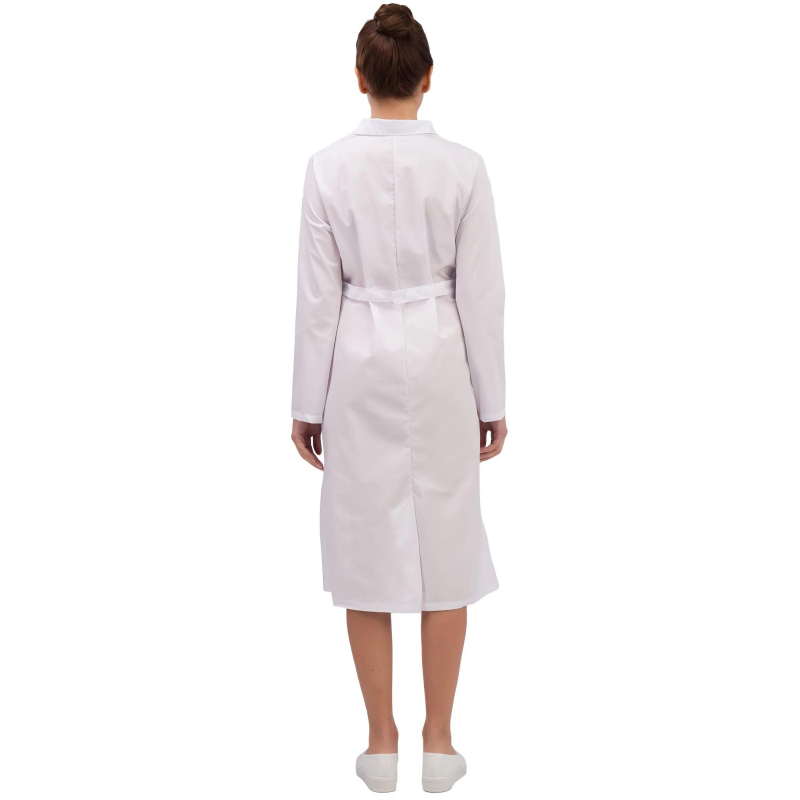 Халат медицинский женский м01-ХЛ белый/бирюзовый (размер 40-42, рост 158-164)Халат м01-ХЛ обеспечивает надёжную защиту от общих производственных загрязнений и сочетает практичность с элегантным дизайном. Изделие рекомендовано для медицинского и административно-хозяйственного персонала.Ткань основная: Ти-Си (65% полиэфир, 35% хлопок), плотность 120 г/кв.м. Материал отличается малой сминаемостью, износостойкостью и комфортностью в носке. Изделия отшиты из белой ткани, но с сиреневым оттенком, который вызывается из-за специфики её отбеливания. Цвет стабилизируется после нескольких стирок.Тип силуэта полуприлегающий. Индивидуальная регулировка ширины по линии талии хлястиком. Эластичные вставки отсутствуют. Манжеты стандартные, без дополнительных элементов. Есть два нижних накладных кармана с фигурной отделкой. Внутренние карманы отсутствуют. Воротник отложной, без застёжки.Застёжка центральная на пуговицы.Рекомендации по уходу: стирка при температуре до 40C, глажка при средней температуре.Стандарты: ГОСТ 12.4.280-2014, ГОСТ 24760-81, ТР ТС 019/2011.Продукция не является изделием медицинского назначения, производится согласно требованиям ГОСТ 12.4.280-2014. Рекомендуется для работников медицинских, санитарных, лечебно-профилактических и других организаций или учреждений здравоохранения: высший, средний и младший персонал (врачи, медицинские сёстры, акушеры, техники, лаборанты, массажисты, фармацевты, сиделки, санитарки и т.д.), административно-хозяйственной группы (заведующие, кладовщики, кухонный персонал и т.д.).Коллекция медицинской униформы м01 создана для профессионалов здравоохранения. <a href='https://www.komus.ru/news/spravochnik-pokupatelya/vybor-razmera-spetsodezhdy/n/15/'; target='_blank'>Подобрать размерЦвет на изображении товара в интернет-магазине или в печатном каталоге может отличаться от оригинала из-за особенностей цветопередачи монитора.