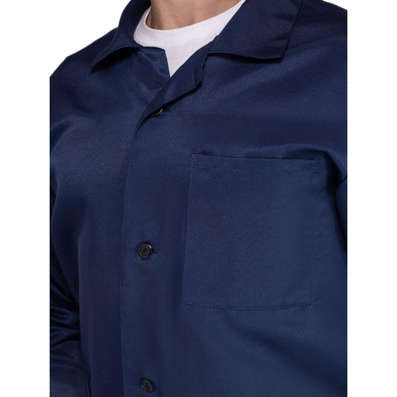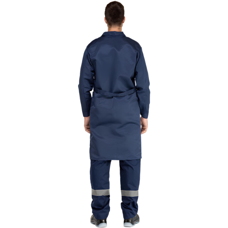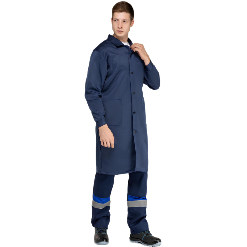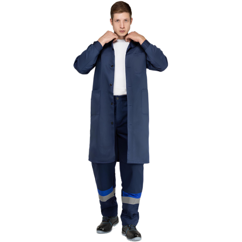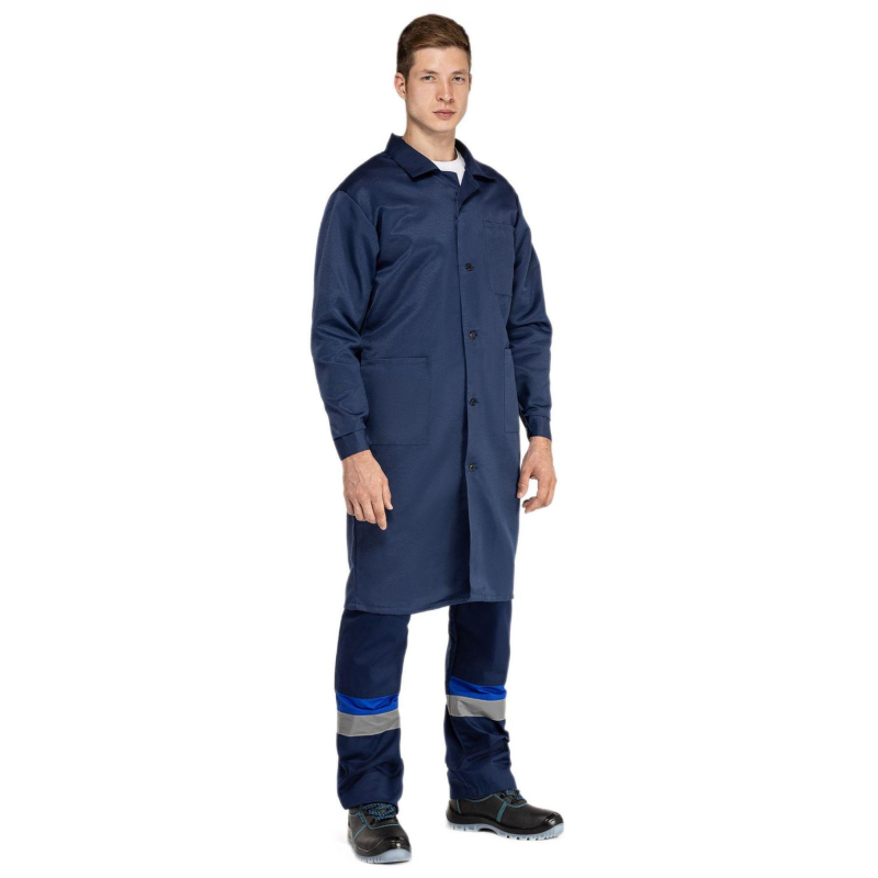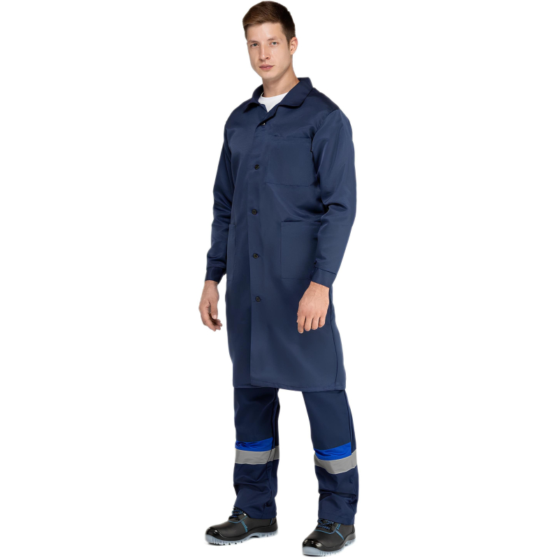 Халат рабочий у03-ХЛ мужской синий (размер 44-46, рост 182-188) предназначен для защиты от общих производственных загрязнений и механических воздействий (истираний).Халат из ткани грета плотностью 190 г/м², состав 80%ПЭ, 20%ХЛ, (ВО). Эта ткань обладает хорошей прочностью, что делает халат удобным для ежедневного использования.Защитные свойства:- Ми - защита от механических воздействий (истирания). - З - защита от общих производственных загрязнений.Халат имеет прямой силуэт, который обеспечивает комфорт и свободу движений. Воротник отложной классический, добавляющий универсальный и строгий внешний вид. Рукава длинные одношовные с притачной манжетой застегивающиеся на петли с пуговицами. Регулировка ширины халата осуществляется при помощи пояса, завязывающегося по спинке, что обеспечивает индивидуальную посадку. В передней части расположены три кармана: один верхний и два нижних накладных, что делает хранение инструментов и мелких предметов удобным.Рекомендации по уходу: стирка при температуре не выше 40°C. Запрещается отбеливание. Гладить при температуре до 110°C. Химчистка запрещена.Халат соответствует требованиям ГОСТ 12.4.132-83.https://www.komus.ru/news/spravochnik-pokupatelya/vybor-razmera-spetsodezhdy/n/15/Подобрать размерЦвет на изображении товара может отличаться от оригинала из-за особенностей цветопередачи монитора.