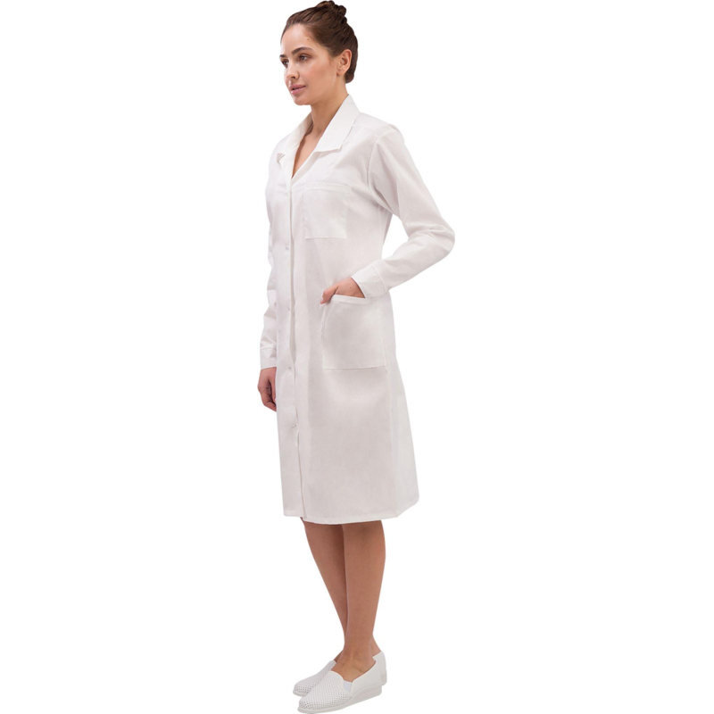 Халат рабочий у02-ХЛ женский белый (размер 64-66, рост 158-164) Женский рабочий халат У02-ХЛ предназначен для защиты от общих производственных загрязнений. Подходит для использования в различных сферах, включая энергетику, пищевую промышленность, сельское хозяйство, строительство, здравоохранение, клининговые службы, фармацевтику, гостиничный сервис и автомобильную промышленность.Основная ткань: бязь, плотность 142 г/м², состав 100% хлопок.Защитные свойстваЗ - защита от общих производственных загрязнений.Тип силуэта и посадка свободные, не стесняют движения. Тип застёжки - пуговицы. Рукава длинные.Рекомендации по уходу: Стирка при температуре не выше 40 C. Запрещено отбеливание и химчистка. Глажение при температуре до 110 C.Изделие изготовлено в соответствии с ГОСТ 12.4.131-83 и ТР ТС 019/2011.https://www.komus.ru/news/spravochnik-pokupatelya/vybor-razmera-spetsodezhdy/n/15/Подобрать размерЦвет товара на изображении в интернет-магазине или в печатном каталоге может отличаться от оригинала из-за особенностей цветопередачи монитора.Законодательные и технические документы