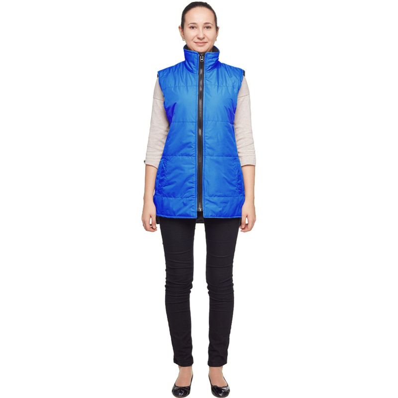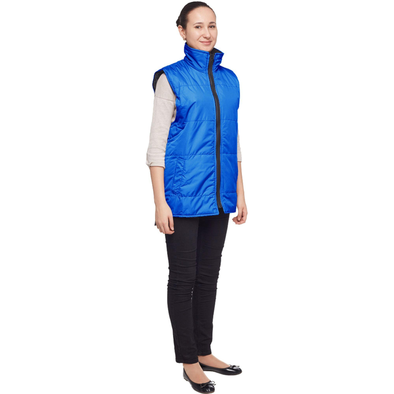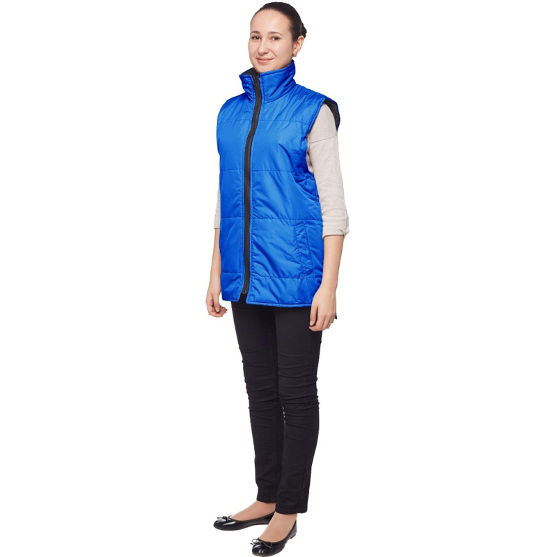 Жилет утепленный Комфорт+ (размер 48-50, рост 170-176) васильковый с центральной застежкой на молнию и с двумя прорезными карманами. Нижние концы борта закругленные. Подходит для работ в прохладных помещениях или на улице, с ограничением от +5 до +7 градусов Цельсия. Жилет универсален, он может быть использован в качестве униформы для женщин и для мужчин. Ткань: 100% полиэфир. Плотность ткани: 100 г/кв.м. Жилет утеплен синтепоном, 2 слоя по 100 г/кв.м. Ткань подкладки: 100% полиэстер. Защищает от общих производственных загрязнений. Цвет на изображении товара в интернет-магазине или в печатном каталоге может отличаться от оригинала из-за особенностей цветопередачи монитора.