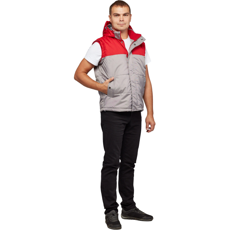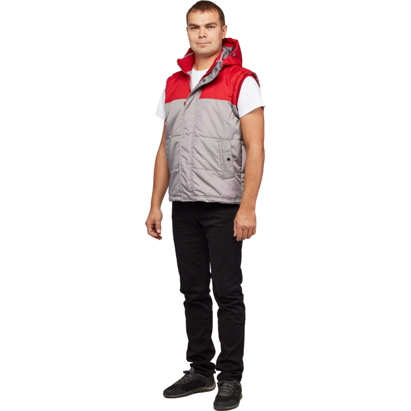 Жилет изготовлен из ткани дюспо, имеющей водоотталкивающую пропитку и обладающей ветрозащитными свойствами, плотностью 80г/кв.м, состав - 100% пэ. Утеплитель - синтепон, 200 г/кв.м (2 слоя по 100 Г/кв.м). Основной цвет изделия серый, отделочный - красный. Жилет с центральной застежкой на молнию, с ветрозащитной планкой на кнопках, съемным капюшоном, подкладом. Капюшон регулируется при помощи шнура-резинки и фиксаторов. Жилет простеган, имеет два боковых накладных кармана на кнопках, один внутренний нагрудной прорезной карман на молнии. Внутренняя часть воротника и пройма рукавов обработана трикотажным полотном (подвяз). В коллекции Статус представлены утепленные жилеты и толстовки Статус-Т в двух цветовых вариантах: серый с красной отделкой и серый с синей отделкой. Толстовки и жилеты комбинируются между собой исходя из расцветки. Цвет на изображении товара в интернет-магазине или в печатном каталоге может отличаться от оригинала из-за особенностей цветопередачи монитора.