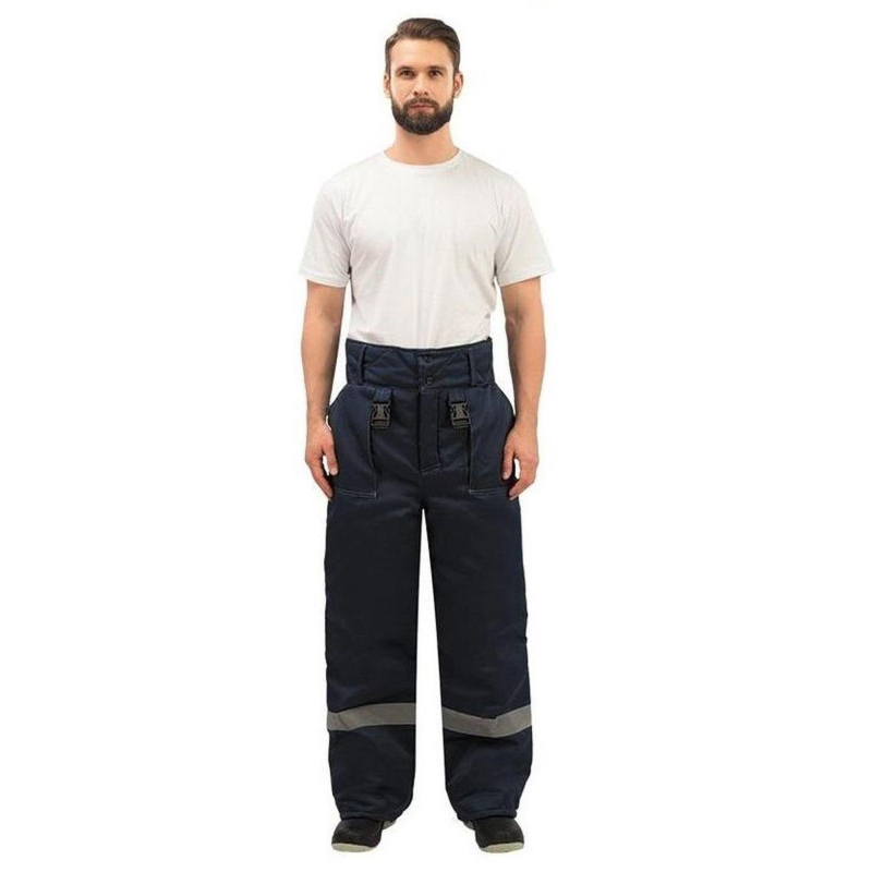 Спецодежда зимняя, брюки мужские модели з32-БР. Размер 44-46, рост 170-176. Изготовлены из смесовой ткани (Тип 3) - 80% полиэстер, 20% хлопок, с водоотталкивающей пропиткой. Плотность ткани 210 г/кв.м. Такой материал обладает улучшенными эксплуатационными характеристиками, благодаря высокой плотности непроницаем для пыли, отличается высокой износостойкостью. Сохраняет яркий цвет. Утеплитель - синтепон, плотностью - 360 г/кв.м (основа) и 240 г/кв.м (ноги). Материал подкладки - 100% полиэстер. Светоотражающая полоса шириной 5 см размещена внизу брюк. Застежка - гульф на три петли-пуговицы. Брюки прямого силуэта, с отрезным поясом. Пояс завышенный, застегивающийся на две петли-пуговицы, с пятью шлевками. Пояс стеганый на бретелях с регулировкой фастексами. Передняя часть брюк: два накладных кармана с косым входом. По низу кармана двойная отсрочка. Задняя часть: по линии талии наличие двух выточек. Нижняя часть брюк обработана швом в подгибку. В брюках припуски боковых, шаговых швов направлены на задние половинки, припуск шва сидения направлен на левую заднюю половинку. Брюки предназначены для защиты работающих от пониженных температур в различных отраслях промышленности, а также производственных загрязнений. Рекомендуется для использования в ЖКХ, озеленении территории, строительстве, проведении ремонтных работ, промышленности, логистике, сельском хозяйстве. Соответствуют стандартам ГОСТ 12.4.303-2016, ТР ТС 019/2011. Коллекция зимней спецодежды з32 представлена в двух видах ткани - смесовая с влагоотталкивающей пропиткой и Оксфорд. К брюкам з32-БР из смесовой ткани подходят куртки з32-КУ из аналогичной ткани. ЗАКОНОДАТЕЛЬНЫЕ И ТЕХНИЧЕСКИЕ ДОКУМЕНТЫ:
