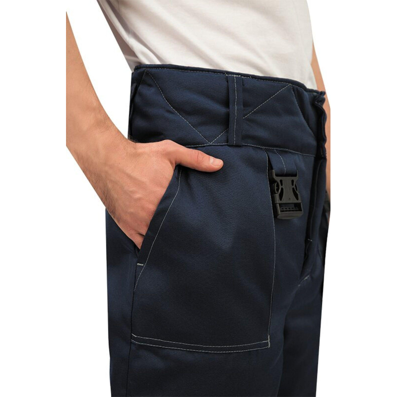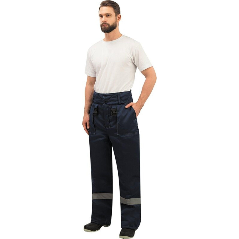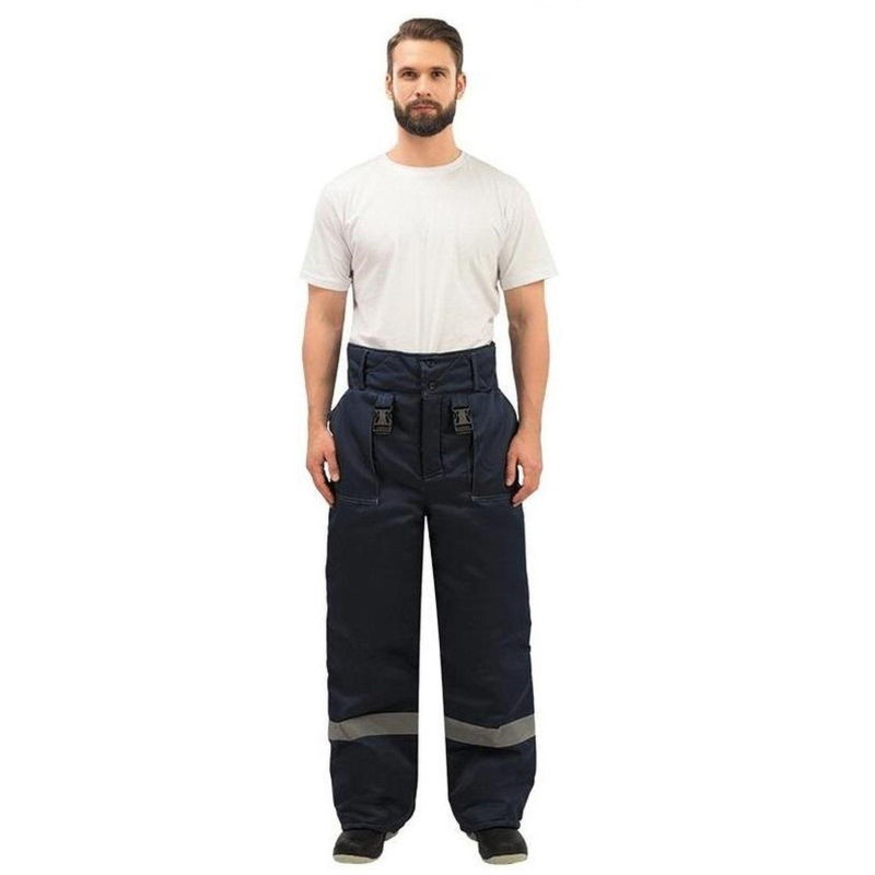 Спецодежда зимняя, брюки мужские модели з32-БР. Размер 48-50, рост 170-176. Изготовлены из смесовой ткани (Тип 3) - 80% полиэстер, 20% хлопок, с водоотталкивающей пропиткой. Плотность ткани 210 г/кв.м. Такой материал обладает улучшенными эксплуатационными характеристиками, благодаря высокой плотности непроницаем для пыли, отличается высокой износостойкостью. Сохраняет яркий цвет. Утеплитель - синтепон, плотностью - 360 г/кв.м (основа) и 240 г/кв.м (ноги). Материал подкладки - 100% полиэстер. Светоотражающая полоса шириной 5 см размещена внизу брюк. Застежка - гульф на три петли-пуговицы. Брюки прямого силуэта, с отрезным поясом. Пояс завышенный, застегивающийся на две петли-пуговицы, с пятью шлевками. Пояс стеганый на бретелях с регулировкой фастексами. Передняя часть брюк: два накладных кармана с косым входом. По низу кармана двойная отсрочка. Задняя часть: по линии талии наличие двух выточек. Нижняя часть брюк обработана швом в подгибку. В брюках припуски боковых, шаговых швов направлены на задние половинки, припуск шва сидения направлен на левую заднюю половинку. Брюки предназначены для защиты работающих от пониженных температур в различных отраслях промышленности, а также производственных загрязнений. Рекомендуется для использования в ЖКХ, озеленении территории, строительстве, проведении ремонтных работ, промышленности, логистике, сельском хозяйстве. Соответствуют стандартам ГОСТ 12.4.303-2016, ТР ТС 019/2011. Коллекция зимней спецодежды з32 представлена в двух видах ткани - смесовая с влагоотталкивающей пропиткой и Оксфорд. К брюкам з32-БР из смесовой ткани подходят куртки з32-КУ из аналогичной ткани. ЗАКОНОДАТЕЛЬНЫЕ И ТЕХНИЧЕСКИЕ ДОКУМЕНТЫ: