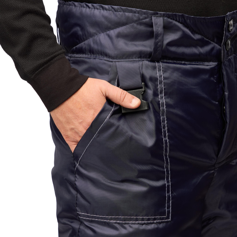 Спецодежда зимняя брюки мужские з32-БР (размер 64-66, рост 182-188). Изготовлены из смесовой ткани (Тип 3) (68% полиэстер, 32% хлопок) плотностью 90 +/- 5 г/кв.м, с водоотталкивающей пропиткой. Такой материал обладает улучшенными эксплуатационными характеристиками, благодаря высокой плотности непроницаем для пыли, отличается высокой износостойкостью. Сохраняет яркий цвет. Утеплитель - синтепон, плотностью - 360 г/кв.м (основа) и 240 г/кв.м (ноги). Материал подкладки - 100% полиэстер. Светоотражающая полоса шириной 5 см размещена внизу брюк. Застежка - гульф на три петли-пуговицы. Брюки прямого силуэта, с отрезным поясом. Пояс завышенный, застегивающийся на две петли-пуговицы, с пятью шлевками. Пояс стеганый на бретелях с регулировкой фастексами. Передняя часть брюк: два накладных кармана с косым входом. Понизу кармана двойная отсрочка. Задняя часть: по линии талии наличие двух выточек. Нижняя часть брюк обработана швом в подгибку. В брюках припуски боковых, шаговых швов направлены на задние половинки, припуск шва сидения направлен на левую заднюю половинку. Брюки предназначены для защиты работающих от пониженных температур в различных отраслях промышленности, а также производственных загрязнений. Изготавливаются в соответствии с ГОСТ 12.4.303-2016, ТР ТС 019/2011. Рекомендуется для использования в ЖКХ, озеленении территории, строительстве, проведении ремонтных работ, промышленности, логистике, сельском хозяйстве. Коллекция зимней спецодежды з32 представлена в двух видах ткани - смесовая с влагоотталкивающей пропиткой и Оксфорд. К брюкам з32-БР из ткани Оксфорд подходят куртки з32-КУ из аналогичной ткани. ЗАКОНОДАТЕЛЬНЫЕ И ТЕХНИЧЕСКИЕ ДОКУМЕНТЫ: