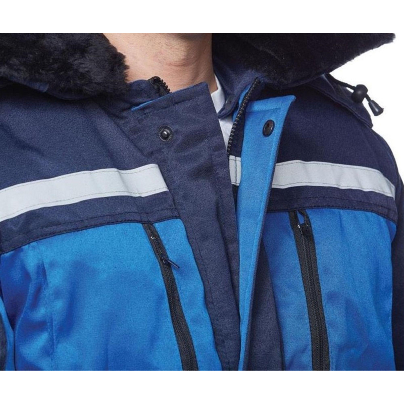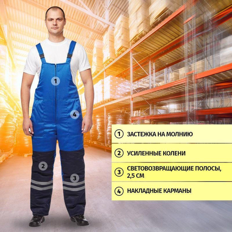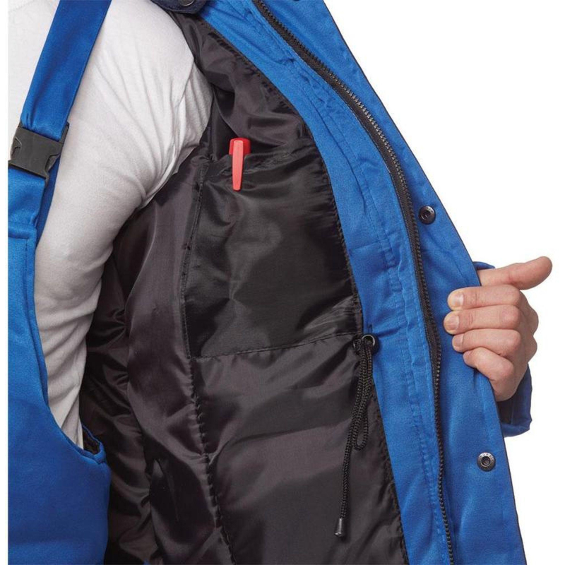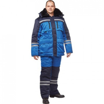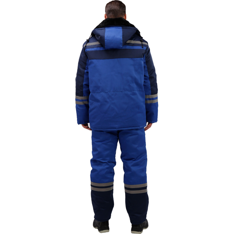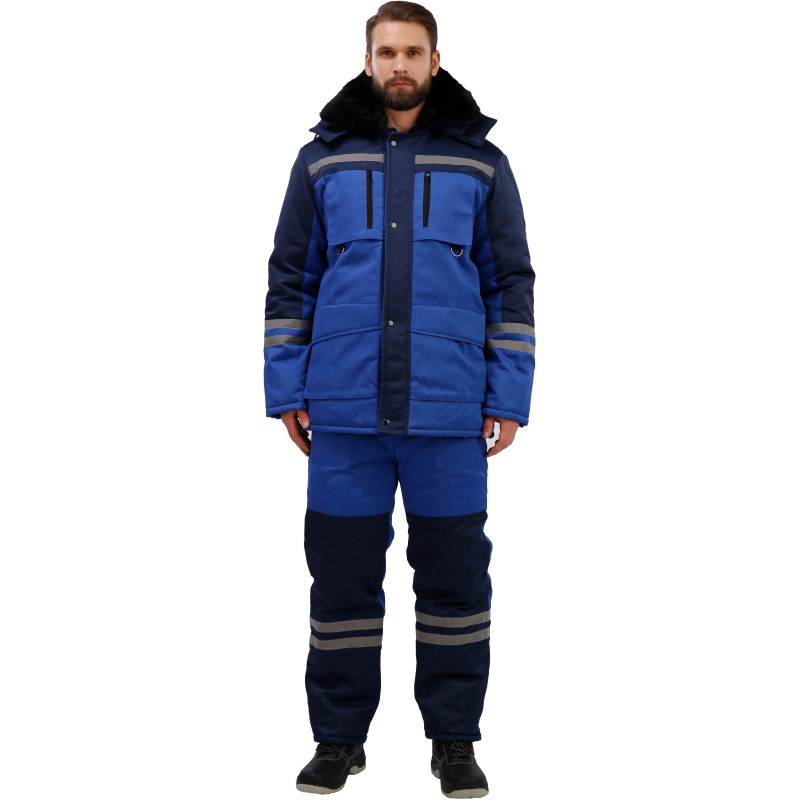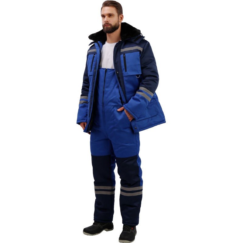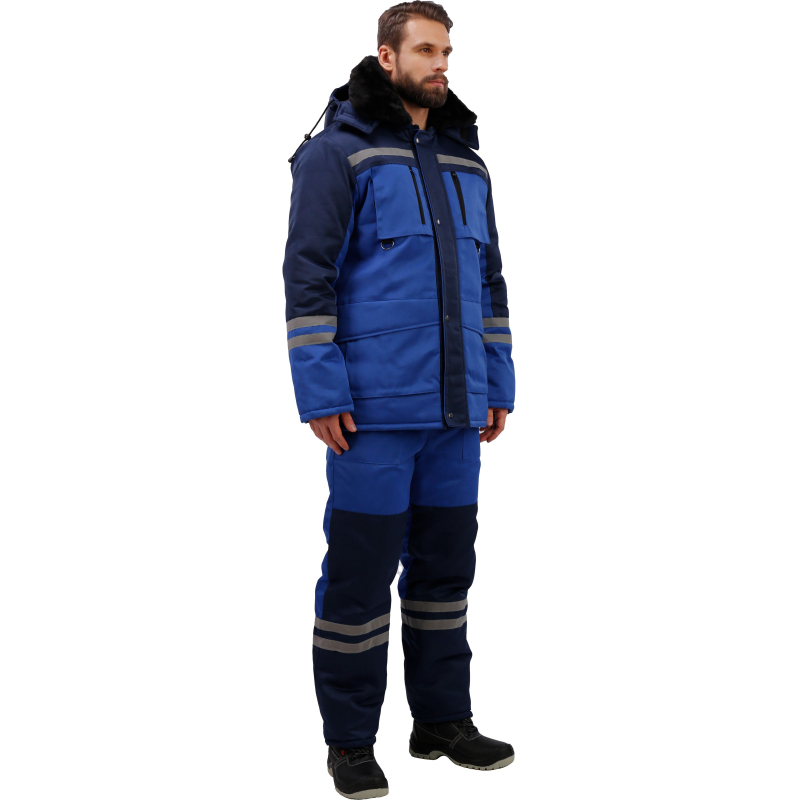 Спецодежда зимняя, костюм мужской модели з03-КПК. Состоит из куртки и полукомбинезона. Размер 52-54, рост 170-176. Изготовлен из смесовой ткани с водоотталкивающей пропиткой (80% полиэстер, 20% хлопок), плотность ткани - 190 г/кв.м. Утеплитель из синтепона, плотностью - 360 г/кв.м (основа) и 240 г/кв.м (руки/ноги). Технология изготовления термоскрепленного синтепона (евросинтепона) позволяет использовать данный утеплитель для создания более тонких изделий с сохранением термозащитных свойств. Важными преимуществами утеплителя являются легкость и хорошая пластичность, что улучшает подвижность в костюме. А также исключение миграции волокна через ткани верха и подкладки за счет скрепления слоев. Материал подкладки - 100% полиэстер. Светоотражающая полоса размещена на груди, спине, рукавах, а также внизу полукомбинезона. Куртка с центральной застежкой на молнию, двумя ветрозащитными клапанами, съемным утепленным капюшоном, нижними прорезными и верхними накладными карманами. Полукомбинезон классического покроя с усилением в области колен и молниями по низу боковых швов. Костюм обеспечивает защиту от пониженных температур и производственных загрязнений. Рекомендуется использовать в сельском хозяйстве, логистики, легкой промышленности, строительстве. Соответствует стандартам ГОСТ 12. 4. 303-2016, ТР ТС 019/2011. Законодательные и технические документы