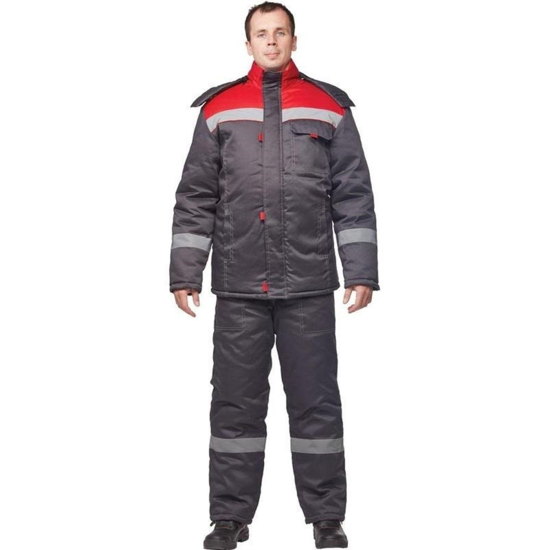 Спецодежда зимняя костюм мужской з31-КПК состоит из куртки и полукомбинезона (размер 56-58, рост 182-188). Изготовлен из смесовой ткани (65% полиэстер, 35% хлопок), плотность ткани - 210 г/кв.м. Утеплитель - синтепон, плотностью - 360 г/кв.м (основа) и 240 г/кв.м (руки/ноги). Технология изготовления термоскрепленного синтепона (евросинтепона) позволяет использовать данный утеплитель для создания более тонких изделий с сохранением термозащитных свойств. Важными преимуществами утеплителя являются легкость и хорошая пластичность, что улучшает подвижность в костюме. А также исключение миграции волокна через ткани верха и подкладки за счет скрепления слоев. Материал подкладки - 100% полиэстер. Данная модель костюма предназначена для носки при температуре до -18°C. Светоотражающая полоса размещена на груди, спине, рукавах, а также внизу полукомбинезона. Куртка с центральной застежкой на молнию, ветрозащитным клапаном, съемным капюшоном, имеет два нижних внутренних кармана и один верхний накладной, трикотажные напульсники. Полукомбинезон классического покроя с центральной молнией, с двумя нижними накладными карманами. Костюм обеспечивает защиту от пониженных температур и производственных загрязнений. Стандарты: ГОСТ 12.4.303-2016. Костюмы, состоящие из куртки и полукомбинезона, из коллекции зимней спецодежды з31 представлены в нескольких цветовых сочетаниях: серый с контрастной отделкой красного цвета и синий, с аналогичной красной отделкой.
