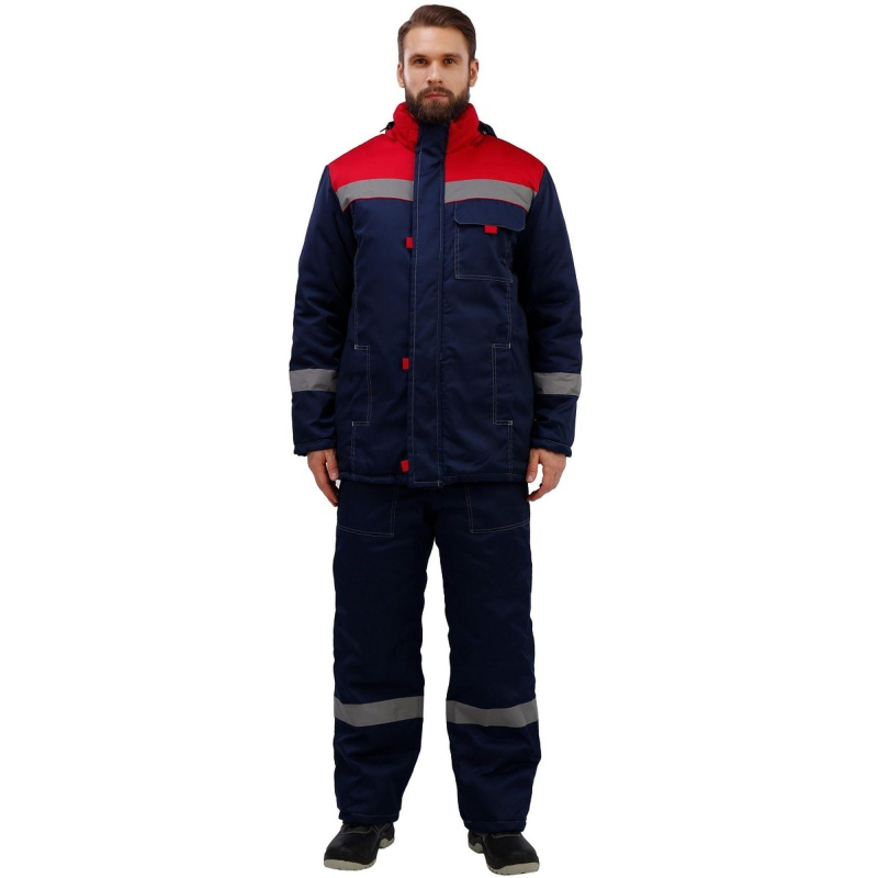 Спецодежда зимняя костюм мужской з31-КПК состоит из куртки и полукомбинезона (размер 60-62, рост 170-176) . Изготовлен из смесовой ткани (65% полиэстер, 35% хлопок), плотность ткани - 210 г/кв.м. Утеплитель - синтепон, плотностью - 360 г/кв.м (основа) и 240 г/кв.м (руки/ноги). Технология изготовления термоскрепленного синтепона (евросинтепона) позволяет использовать данный утеплитель для создания более тонких изделий с сохранением термозащитных свойств. Важными преимуществами утеплителя являются легкость и хорошая пластичность, что улучшает подвижность в костюме. А также исключение миграции волокна через ткани верха и подкладки за счет скрепления слоев. Материал подкладки - 100% полиэстер. Данная модель костюма предназначена для носки при температуре до -18°C. Светоотражающая полоса размещена на груди, спине, рукавах, а также внизу полукомбинезона. Куртка с центральной застежкой на молнию, ветрозащитным клапаном, съемным капюшоном, имеет два нижних внутренних кармана и один верхний накладной, трикотажные напульсники. Полукомбинезон классического покроя с центральной молнией, с двумя нижними накладными карманами. Костюм обеспечивает защиту от пониженных температур и производственных загрязнений. Стандарты: ГОСТ 12.4.303-2016. Костюмы, состоящие из куртки и полукомбинезона, из коллекции зимней спецодежды з31 представлены в нескольких цветовых сочетаниях: серый с контрастной отделкой красного цвета и синий, с аналогичной красной отделкой.