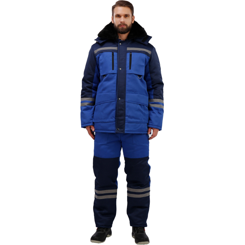 Спецодежда зимняя костюм мужской з03-КПК состоит из куртки и полукомбинезона (размер 64-66, рост 194-200) . Изготовлен из смесовой ткани с водоотталкивающей пропиткой (80% полиэстер, 20% хлопок), плотность ткани - 190 г/кв.м. Утеплитель из синтепона, плотностью - 360 г/кв.м (основа) и 240 г/кв.м (руки/ноги). Материал подкладки - 100% полиэстер. Светоотражающая полоса размещена на груди, спине, рукавах, а также внизу полукомбинезона. Куртка с центральной застежкой на молнию, двумя ветрозащитными клапанами, съемным утепленным капюшоном, нижними прорезными и верхними накладными карманами. Полукомбинезон классического покроя с усилением в области колен и молниями по низу боковых швов. Костюм обеспечивает защиту от пониженных температур и производственных загрязнений. ГОСТ 12. 4. 303-2016. Законодательные и технические документы