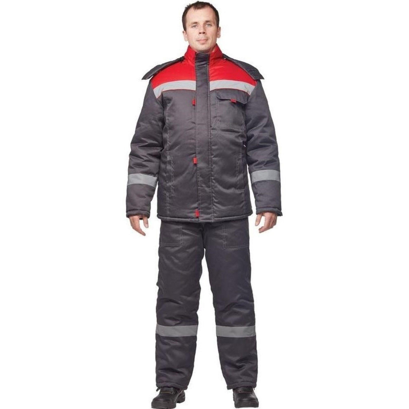 Спецодежда зимняя костюм мужской з31-КПК состоит из куртки и полукомбинезона (размер 64-66, рост 170-176). Изготовлен из смесовой ткани (65% полиэстер, 35% хлопок), плотность ткани - 210 г/кв.м. Утеплитель - синтепон, плотностью - 360 г/кв.м (основа) и 240 г/кв.м (руки/ноги). Технология изготовления термоскрепленного синтепона (евросинтепона) позволяет использовать данный утеплитель для создания более тонких изделий с сохранением термозащитных свойств. Важными преимуществами утеплителя являются легкость и хорошая пластичность, что улучшает подвижность в костюме. А также исключение миграции волокна через ткани верха и подкладки за счет скрепления слоев. Материал подкладки - 100% полиэстер. Данная модель костюма предназначена для носки при температуре до -18°C. Светоотражающая полоса размещена на груди, спине, рукавах, а также внизу полукомбинезона. Куртка с центральной застежкой на молнию, ветрозащитным клапаном, съемным капюшоном, имеет два нижних внутренних кармана и один верхний накладной, трикотажные напульсники. Полукомбинезон классического покроя с центральной молнией, с двумя нижними накладными карманами. Костюм обеспечивает защиту от пониженных температур и производственных загрязнений. Стандарты: ГОСТ 12.4.303-2016. Костюмы, состоящие из куртки и полукомбинезона, из коллекции зимней спецодежды з31 представлены в нескольких цветовых сочетаниях: серый с контрастной отделкой красного цвета и синий, с аналогичной красной отделкой.
