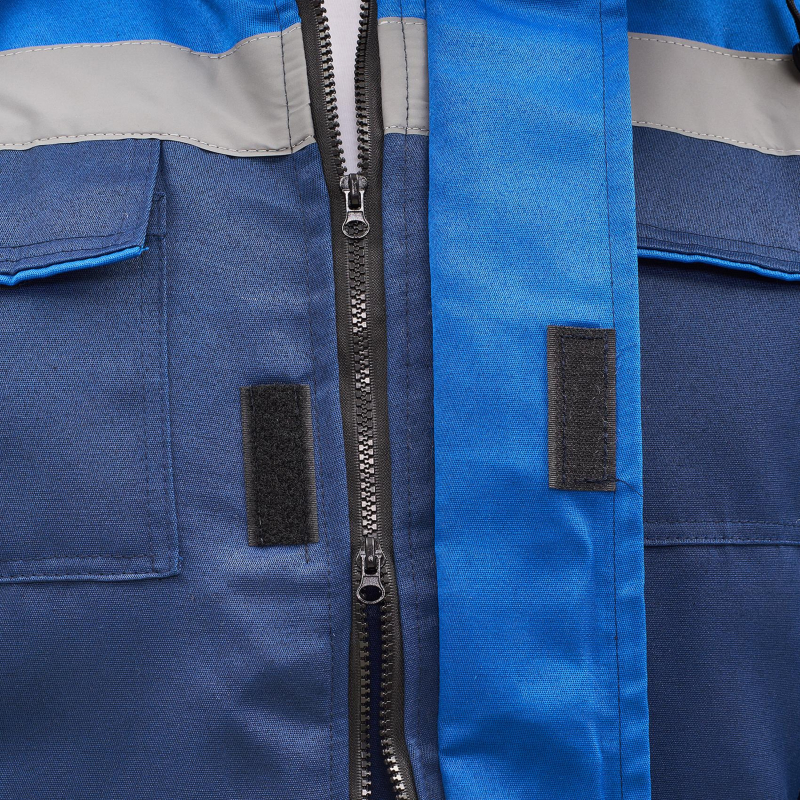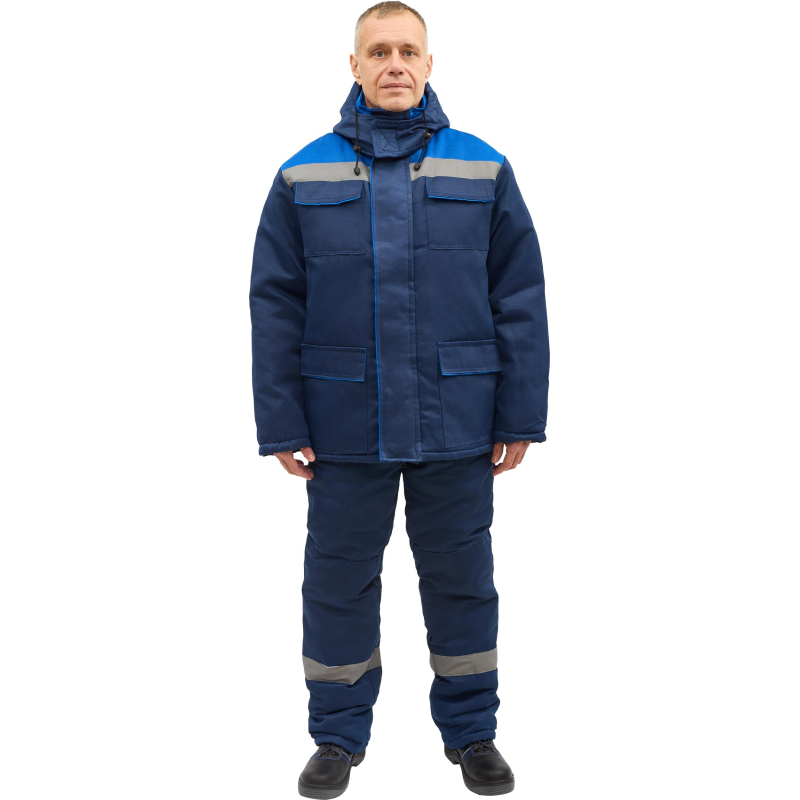 Спецодежда зимняя костюм мужской з12-КПК с СОП состоит из куртки и полукомбинезона (размер 60-62, рост 182-188). Изготовлен из смесовой ткани Грета с водоотталкивающей пропиткой (80% полиэфир, 20% хлопок, плотность 190г/м2). Утеплитель из синтепона, плотностью - 360 г/кв.м (основа) и 240 г/кв.м (руки/ноги). Технология изготовления термоскрепленного синтепона (евросинтепона) позволяет использовать данный утеплитель для создания более тонких изделий с сохранением термозащитных свойств. Важными преимуществами утеплителя являются легкость и хорошая пластичность, что улучшает подвижность в костюме. А также исключение миграции волокна через ткани верха и подкладки за счет скрепления слоев. Материал подкладки - 100% полиэстер. Куртка застегивается на молнию и контактную ленту, оснащена отстегивающимся регулируемым капюшоном и напульсниками, а также имеет нагрудные и боковые накладные карманы с клапанами и внутренний карман. Полукомбинезон классического покроя с усилением в области колен и боковыми карманами, застегивается на молнию. Наличие СОП ленты 50 мм на куртке проходит по спине, груди, на п/к по низу.Костюм обеспечивает защиту от пониженных температур и производственных загрязнений. ГОСТ 12. 4. 303-2016