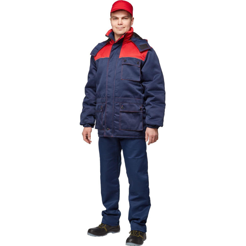 Спецодежда зимняя куртка мужская з08-КУ (размер 44-46, рост 170-176). Изготовлена из смесовой ткани (80% полиэстер, 20% хлопок) с водоотталкивающей пропиткой, плотность ткани - 190 г/кв.м. Утеплитель - синтепон, плотностью - 360 г/кв.м (основа) и 240 г/кв.м (руки). Материал подкладки - 100% полиэстер. Куртка с центральной застежкой на молнию, ветрозащитным клапаном. Кокетка полочек и спина отделаны тканью со светоотражающим кантом. На куртке есть два накладных кармана и отстегивающийся капюшон. Куртка обеспечивает защиту от пониженных температур и производственных загрязнений. Рекомендована для использования в сельском хозяйстве, логистике, легкой промышленности, строительстве. ГОСТ 12.4.303-2016. Имеется светоотражающий кант.