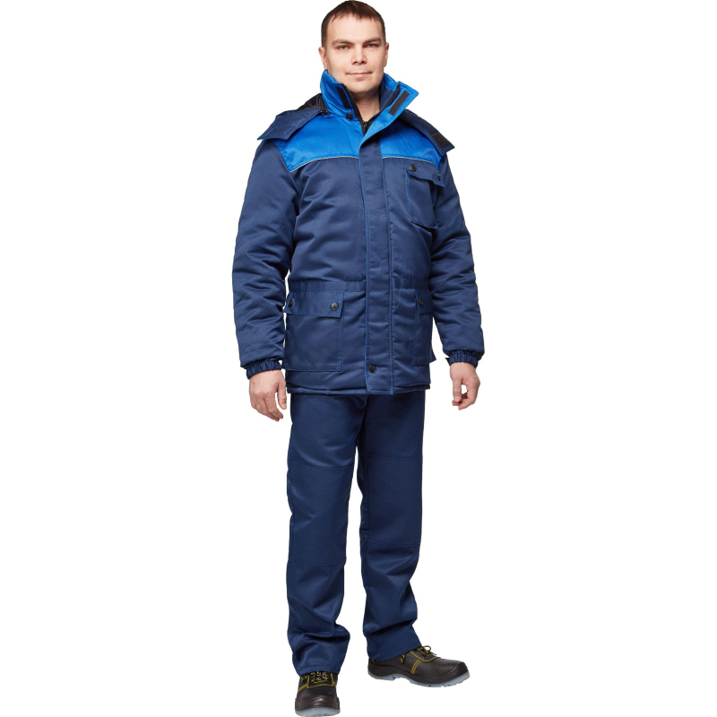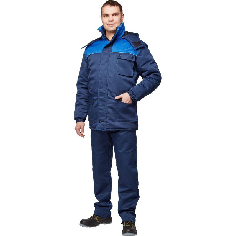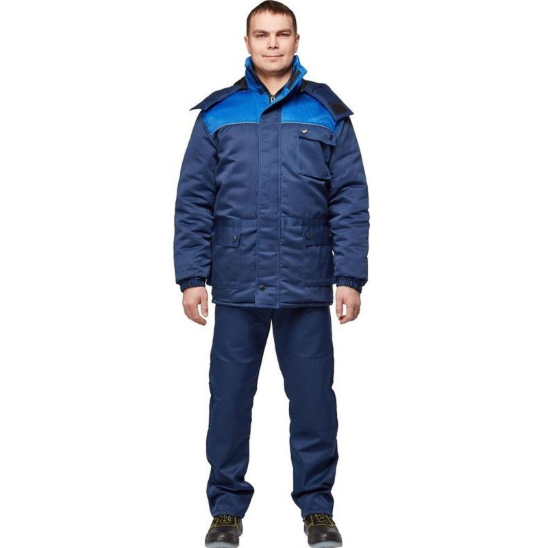 Спецодежда зимняя куртка мужская з08-КУ (размер 56-58, рост 170-176). Изготовлена из смесовой ткани (80% полиэстер, 20% хлопок) с водоотталкивающей пропиткой, плотность ткани - 190 г/кв.м. Утеплитель - синтепон, плотностью - 360 г/кв.м (основа) и 240 г/кв.м (руки). Материал подкладки - 100% полиэстер. Куртка с центральной застежкой на молнию, ветрозащитным клапаном. Кокетка полочек и спина отделаны тканью со светоотражающим кантом. На куртке есть два накладных кармана и отстегивающийся капюшон. Куртка обеспечивает защиту от пониженных температур и производственных загрязнений. Рекомендована для использования в сельском хозяйстве, логистике, легкой промышленности, строительстве. ГОСТ 12.4.303-2016. Имеется светоотражающий кант. К