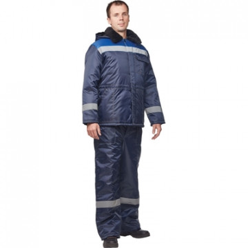 Спецодежда зимняя куртка мужская з32-КУ (размер 64-66, рост 182-188) темно-синего цвета с васильковой вставкой. Изготовлена из материала Оксфорд (100% полиэстер) плотностью 90 +/- 5 г/кв.м. Утеплитель - синтепон, плотностью - 360 г/кв.м (основа) и 240 г/кв.м (руки). Технология изготовления термоскрепленного синтепона (евросинтепона) позволяет использовать данный утеплитель для создания более тонких изделий с сохранением термозащитных свойств. Важными преимуществами утеплителя являются легкость и хорошая пластичность, что улучшает подвижность в костюме. А также исключение миграции волокна через ткани верха и подкладки за счет скрепления слоев. Материал подкладки - 100% полиэстер. Светоотражающая полоса шириной 5 см размещена спереди и сзади между кокеткой и нижней частью куртки. Куртка прямого силуэта, удлиненная, с центральной бортовой супатной застежкой на 5 петель-пуговиц. Полочка отрезная по линии кокетки. Наличие двух нижних накладных карманов с косым срезом и наличие одного накладного нагрудного кармана с клапаном с двойной контрастной отстрочкой. Низ куртки обработан швом в подгибку с закрытым срезом. По линии талии настрочена кулиса со сквозным выходом наизнанку, регулируется шаровым фиксатором и шнуром. Спинка прямая, отрезная по линии кокетки. Рукав прямой, втачной, одношовный. Внутри рукава по нижней части на подкладку притачан трикотажный манжет. Воротник меховой, спереди застегивающийся на пуговицу. Куртка предназначена для защиты работающих от пониженных температур в различных отраслях промышленности, а также производственных загрязнений. Рекомендована для использования в сельском хозяйстве, логистике, легкой промышленности, строительстве. Изготавливается в соответствии с ГОСТ 12. 4. 303-2016. Внимание! Нанесение логотипа методом термопереноса для данного типа ткани не рекомендуется. Коллекция зимней спецодежды з32 представлена в двух видах ткани - смесовая с влагоотталкивающей пропиткой и Оксфорд. Куртки из коллекции предлагаются в двух цветовых решениях: синий с отделкой василькового цвета и синий с отделкой яркого оранжевого цвета. К куртке з32-КУ из ткани Оксфорд подходят брюки з32-БР синего цвета из аналогичной ткани. ЗАКОНОДАТЕЛЬНЫЕ И ТЕХНИЧЕСКИЕ ДОКУМЕНТЫ: