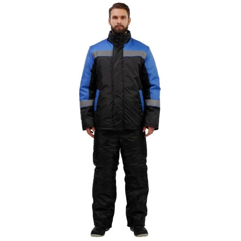 Спецодежда зимняя куртка мужская з38-КУ (размер 56-58, рост 182-188). Изготовлена из ткани 'Оксфорд' (100% полиэстер), плотность ткани - 80 г/кв.м. Утеплитель - синтепон, плотностью - 360 г/кв.м (основа) и 240 г/кв.м (руки). Технология изготовления термоскрепленного синтепона (евросинтепона) позволяет использовать данный утеплитель для создания более тонких изделий с сохранением термозащитных свойств. Важными преимуществами утеплителя являются легкость и хорошая пластичность, что улучшает подвижность в костюме. А также исключение миграции волокна через ткани верха и подкладки за счет скрепления слоев. Материал подкладки - 100% полиэстер. Модель куртки с центральной застежкой на молнию и ветрозащитным клапаном на липучке. Светоотражающая полоса шириной 5 см размещена на груди, спине, рукавах. Куртка обеспечивает защиту от пониженных температур и производственных загрязнений. Рекомендована для использования в строительстве. ТР ТС 019/2011, ГОСТ 12.4.303-2016. В коллекции зимней спецодежды з38 представлены куртки и полукомбинезоны : куртки з38-КУ е и полукомбинезоны з38-ПК в синем и черном цвете. К куртке з38-КУ подходит полукомбинезон з38-ПК.