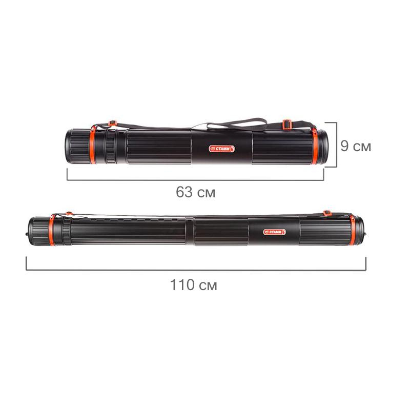 Тубус телескопический Стамм ПТ-11 компактный, легкий и прочный. Закручивающаяся боковая крышка. Длина 63-110 см, диаметр - 9 см. Корпус разъемный, состоит из 3 частей. Предназначен для чертежей формата A4-А1.