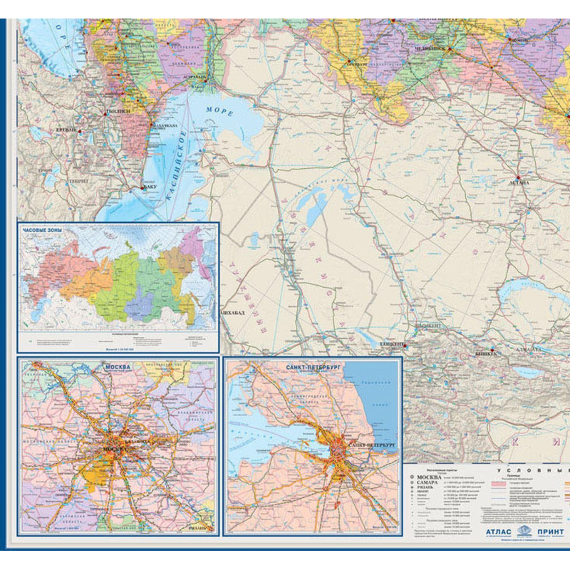 Настенная карта транспорта России и сопредельных государств. На карте показаны все виды транспорта России: автомобильный, железнодорожный, морской, внутренний водный, воздушный и трубопроводный. Отдельно даны транспортные коридоры, часовые пояса и схема железных дорог России. Подробно показаны Московский и Санкт-Петербургский транспортные узлы. Год издания 2024.