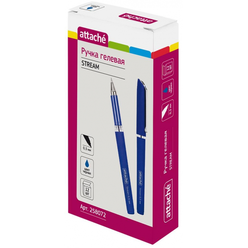 Гелевая ручка Attache Stream с корпусом из материала, стилизованного под нубук. Металлизированный наконечник ручки, металлический клип для крепления к одежде. Ручка гелевая с чернилами синего цвета, толщина линии - 0,5 мм. Ручка гелевая обеспечивает легкое и мягкое письмо, яркие и насыщенные линии. Чернила гелевой ручки быстро высыхают, не размазываются. Длина стержня 124 мм. Расходные материалы для данной ручки не представлены в ассортименте производителя и в ассортименте компании Комус.
