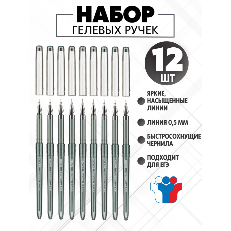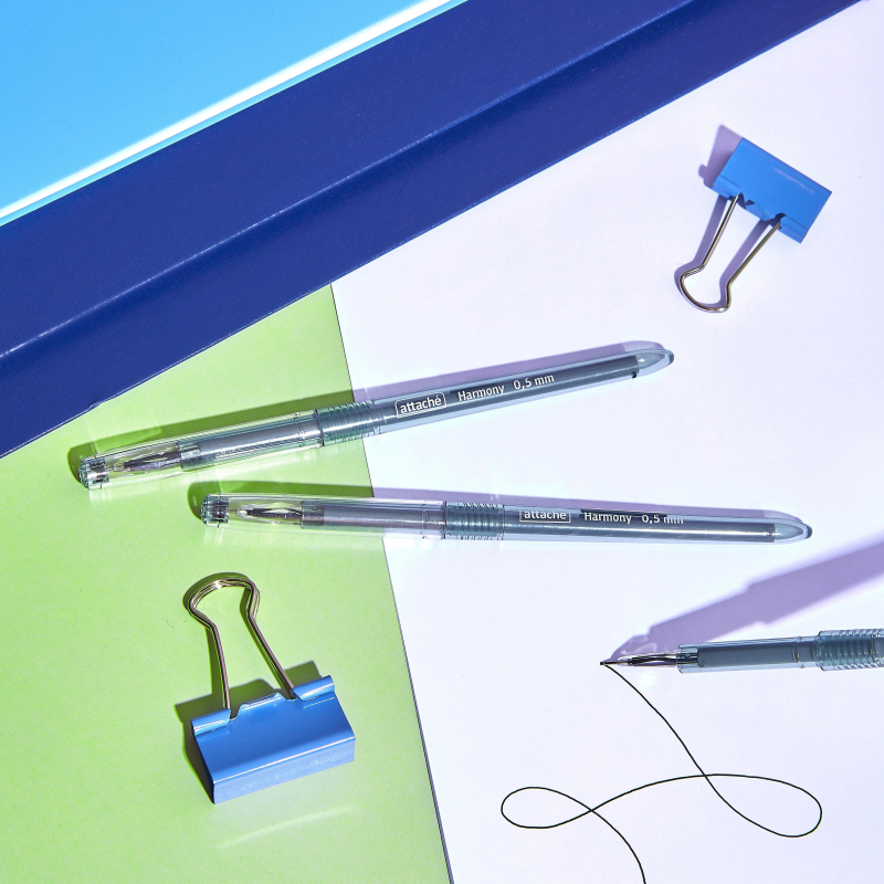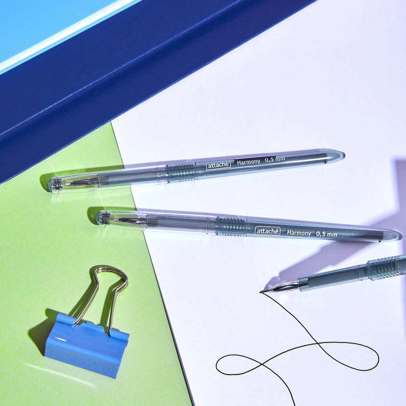 Ручка гелевая неавтоматическая Attache Harmony чёрная (толщина линии 0.5 мм, 12 штук в упаковке) Ручка гелевая Attache Harmony с чёрными чернилами - это элегантный и удобный инструмент для письма, который сочетает в себе стиль и функциональность. Корпус выполнен из высококачественного пластика и имеет глянцевую поверхность чёрного цвета, что придаёт ручке современный и изысканный вид. Чернила быстро высыхают и не размазываются, обеспечивая чистоту и точность при письме. Ручка оснащена игольчатым наконечником, который создаёт сверхтонкую линию письма диаметром 0.5 мм. Это делает ручку идеальной для детализированных записей и мелкого письма. Корпус имеет круглую форму с удобной зоной для захвата, что повышает комфорт при длительном использовании. Стержень ручки не подлежит замене, что делает её одноразовой, но долговечной. Ручка Attache Harmony с чёрными чернилами идеально подходит для использования в офисах, учебных заведениях или дома, а также гармонично сочетается с другими изделиями коллекции Harmony. В упаковке 12 штук, что делает её удобным выбором для ежедневного использования.