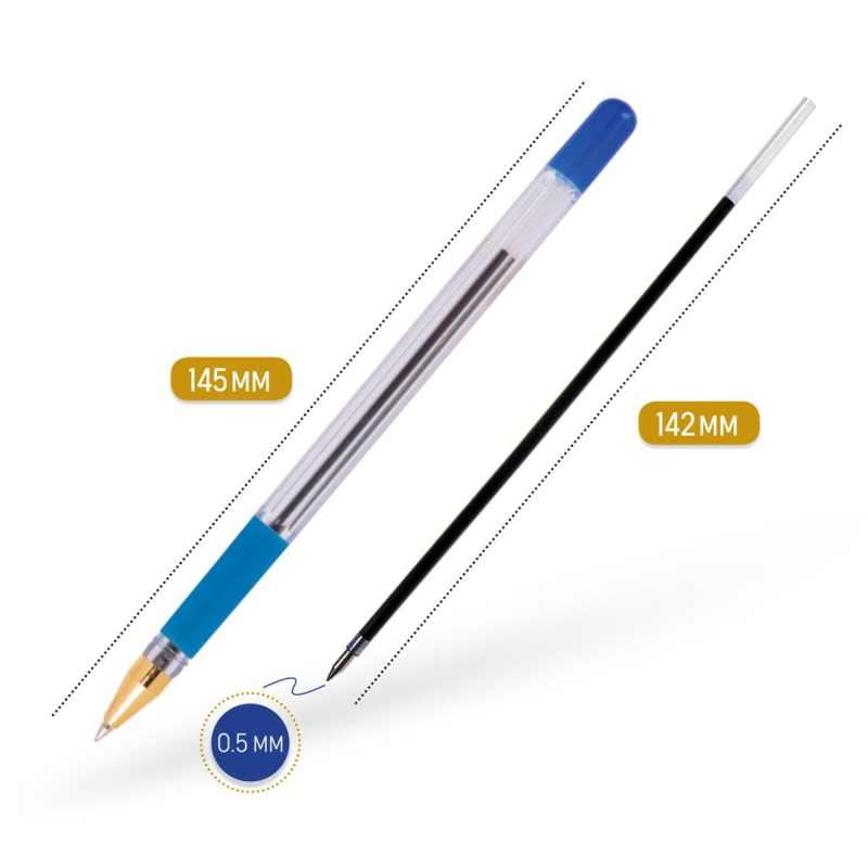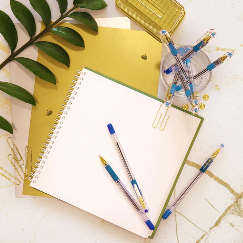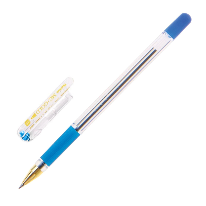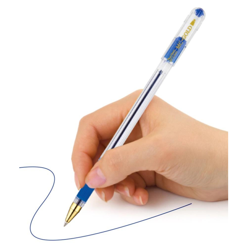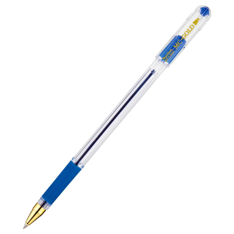 Легендарная шариковая ручка MunHwa MC Gold - одна из самых узнаваемых шариковых ручек. Сочетание комфортного тонкого письма и безупречного стильного дизайна сделало ее абсолютным лидером российского рынка. До мельчайших деталей проработанный корпус: золотой наконечник в сочетании с шестигранным прозрачным корпусом и ребристым мягким противоскользящим резиновым грипом для пальцев в цвет чернил. Уникальные чернила на масляной основе обеспечивают мягкое ровное письмо и уверенное скольжение по бумаге. Рука не устает даже при длительном письме. Тонкий шарик гарантирует качественную и тонкую линию письма. Длина линии письма более 1 200 метров. Цвет чернил - синий, диаметр пишущего узла - 0,5 мм. Упаковка: картонная коробка по 12 штук. MC Gold - идеальная ручка для тонкого письма.