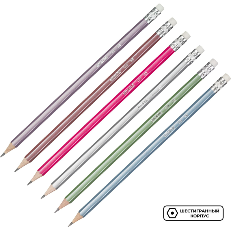 Карандаш чернографитный Attache Silk первый помощник для выполнения проектно-конструкторских работ, позволяет сделать легкий набросок, быстрый стремительный рисунок или нарисовать полноценную картину. В шестигранном неоновом деревянном корпусе. Многослойное лаковое покрытие с шелковистым эффектом. Карандаши с ластиком поставляются заточенными. Твердость грифеля HB. Легко затачивается. Внимание! Товар поставляется в нескольких вариантах цвета/дизайна (без возможности выбора).