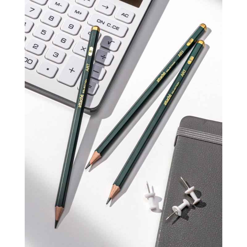 Карандаш чернографитный Attache Selection Art первый помощник для выполнения проектно-конструкторских работ, позволяет сделать легкий набросок, быстрый стремительный рисунок или нарисовать полноценную картину. Выполнен из высококачественной древесины тополя. Имеет шестигранный корпус и многослойное лаковое покрытие зеленого цвета с шелковистым эффектом. Поставляется заточенным, без ластика. Твердость грифеля - B. Легко затачивается. Длина карандаша - 176 мм.