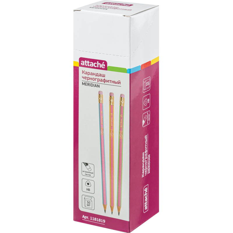 Чернографитный карандаш Attache Selection Meridian первый помощник для выполнения проектно-конструкторских работ, позволяет сделать легкий набросок, быстрый стремительный рисунок или нарисовать полноценную картину.Корпус карандаша выполнен из высококачественного пластика. Притягательность карандаша заключается в цветовом решении его трехгранного корпуса, сочетающего в себе разноцветные полоски приглушенных оттенков. Эргономика корпуса предотвращает соскальзывание пальцев при письме. Карандаш легко затачивается, не крошится при заточке, оснащен ластиком. Поставляется заточенным. Твердость грифеля - HB. Длина карандаша - 186 мм. Внимание! Товар поставляется в нескольких вариантах цвета/дизайна (без возможности выбора).
