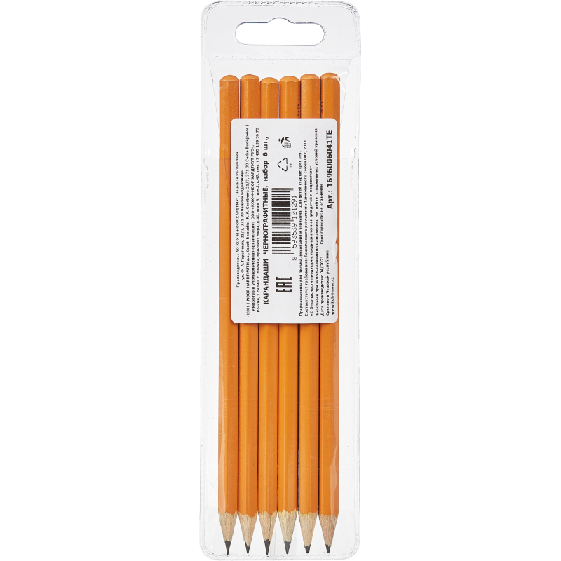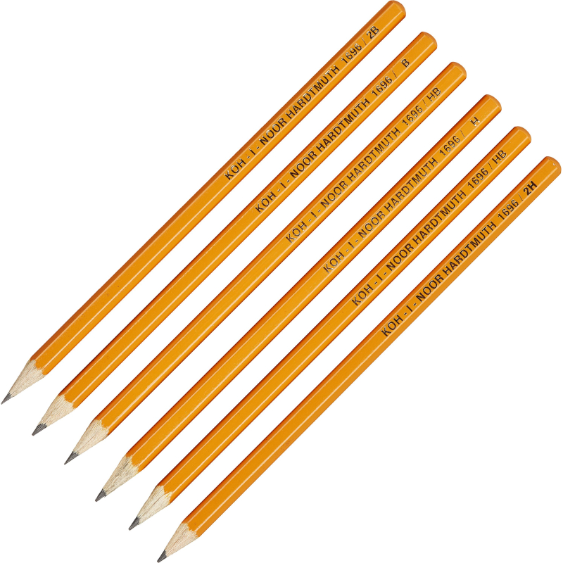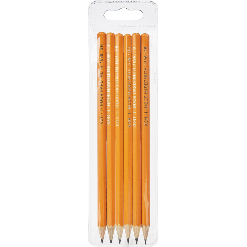 Набор чернографитных карандашей Koh-I-Noor 1696/06 в упаковке в европодвесом. Оптимальны для чертежных работ. Шестигранный деревянный корпус имеет многослойное лаковое покрытие. В наборе 6 карандашей разной степени твердости: 2 шт - HB, 1 шт - H, 1 шт - B, 1 шт - 2H, 1 шт - 2B. Карандаши поставляются заточенными, не оснащены ластиком. Страна производства - Чехия.