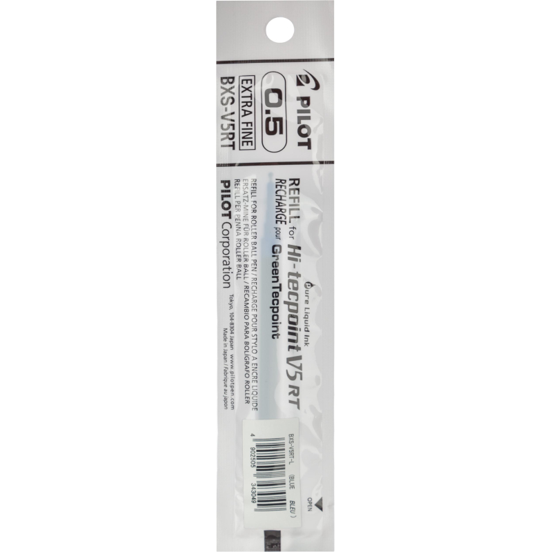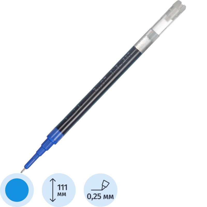 Стержень для роллера PILOT BXS-V5RT синего цвета, толщина линии письма - 0,25 мм, длина стержня - 111 мм, диаметр шарика - 0,5 мм. Обеспечивает четкие и яркие линии, не требует усилий при письме, чернила быстро высыхают. Упакован в блистерную упаковку.