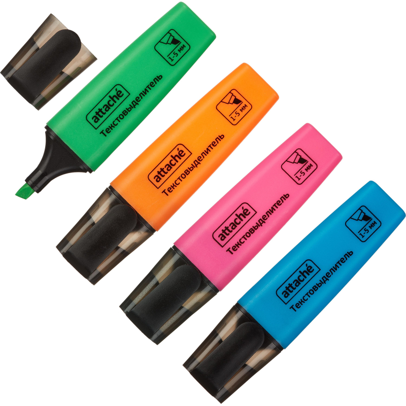 Набор текстовыделителей Attache Colored - это отличный выбор для любителей рисования маркерами. Текстовыделитель поможет выделять самое важное в документах или просто тексте, и Вы сможете обработать и не забыть больше полезной информации. В наборе 5 цветов: желтый, зеленый, оранжевый, розовый, голубой. Текстовыделитель обладает экономным расходом чернил. Светоустойчивые чернила на водной основе не выцветают даже на открытом солнце и не размазываются в процессе. Чернила не промокают бумагу. Цвет корпуса соответствует цвету чернил. Чернила не имеют запах. Маркер обладает плоской формой корпуса. Скошенный наконечник имеет толщину линии письма от 1 до 5 мм, что обеспечивает удобство при работе с текстом, напечатанным мелким шрифтом, или таблицами.