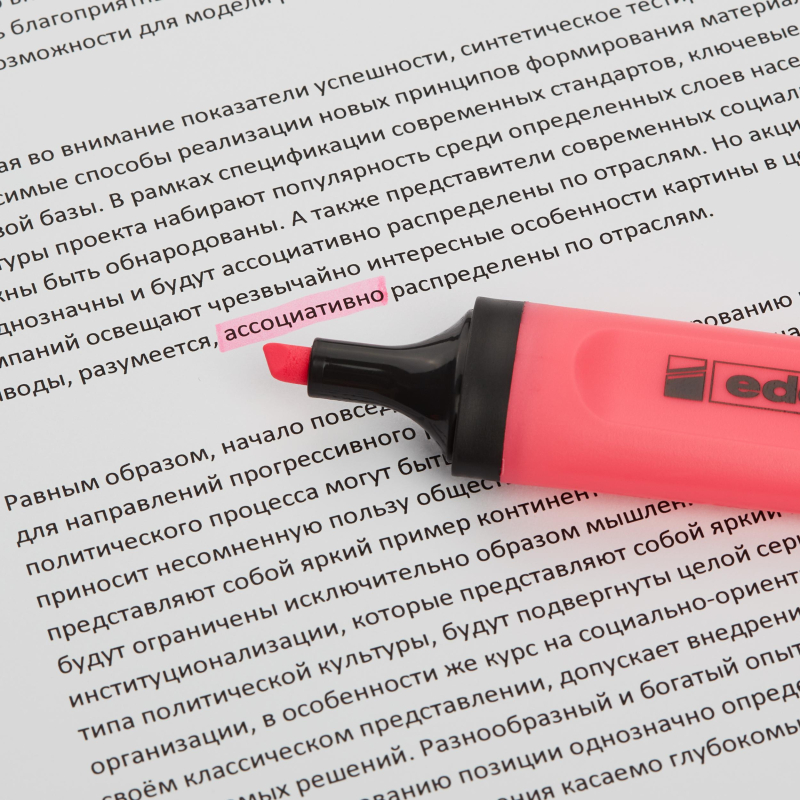 Для выделения слов или текста в книгах, брошюрах, письмах и т.п.<br />Практически для любой бумаги для копирования и факсов.<br />Высокоя светостойкость.<br />Не размазывает текст напечатанный на струйных принтерах.<br />Флуоресцентные насыщенные цвета, обеспечивают высокое качество маркировки.<br />Скошенный наконечник.<br />Чернила на водной основе.<br />Толщина линии - 2-5 мм.
