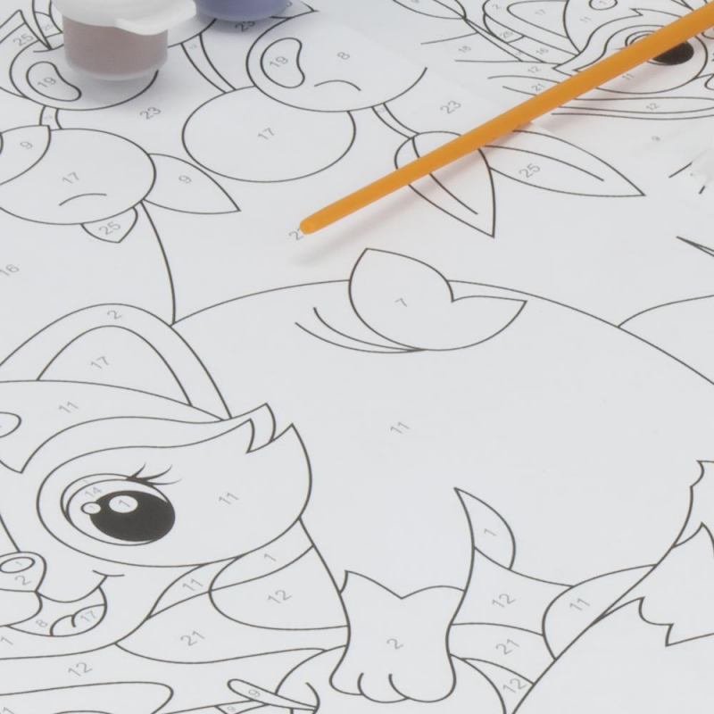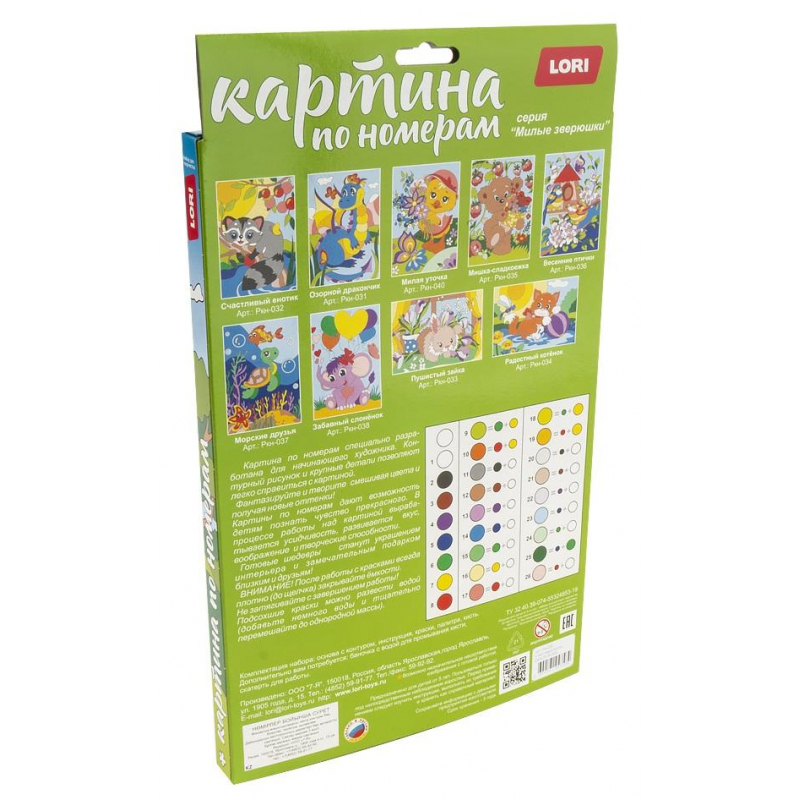 Симпатичный мультяшный персонаж так и просится под кисть художника. Плотная основа, яркие краски (8 цветов + 1 баночка с лаком), входящие в состав набора, сделают художником любого ребенка. Рисование по номерам не только дарит положительные эмоции, но и снимает стресс, развивает мелкую моторику и способствует формированию чувства цвета. Размер готового изделия: 30x20,5 см.