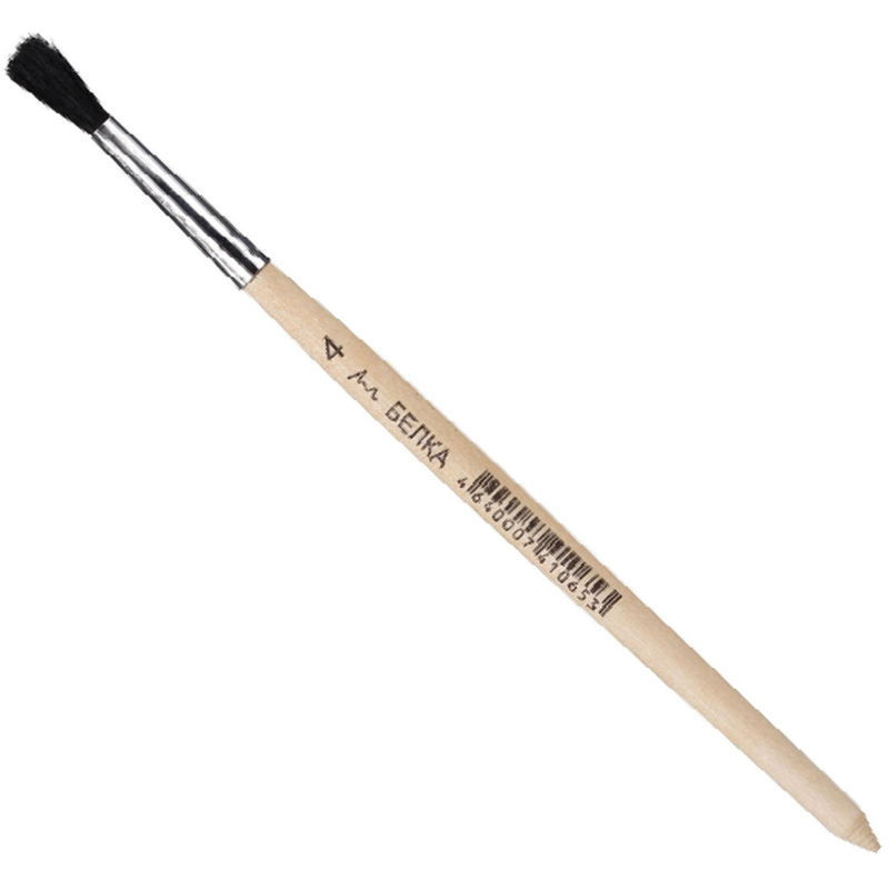 Кисть № 1 School белка круглая № 4. Волос белки чрезвычайно мягкий и упругий, прекрасно набирает воду и краску, хорошо отдает ее на бумагу, при этом не 'полосит' и не портит ее. Одной кистью № 4 можно рисовать целую картину - сделать заливку фона кистью 'плашмя', а острым кончиком нарисовать детали. Кисть имеет короткую (17 см), деревянную ручку. Кисть предназначена для работы акварелью, гуашью, акрилом. Поставляется без упаковки.