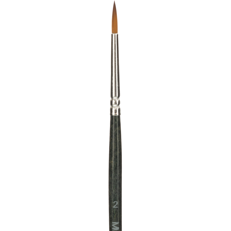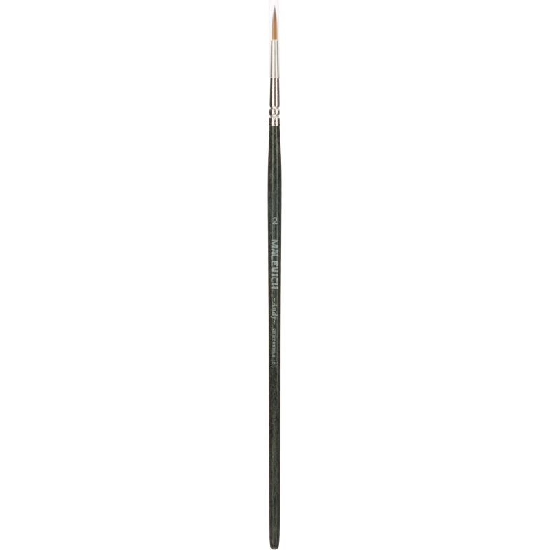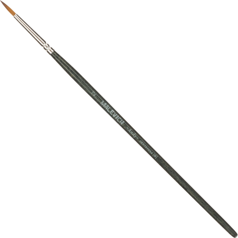 Кисть из синтетики Andy, круглая № 2. Кисть из синтетики серии Andy - это мягкая универсальная синтетика, которая подходит практически для любых видов красок. Ей удобно работать с гуашью, маслом, акварелью, акрилом, темперой. Маслом можно работать в лессировочной технике с разбавителем. Синтетика рыжего цвета с темным кончиком, ручка покрыта синим лаком, ворс закреплен втулкой из латуни с двойной обжимкой. Ручка кисти короткая - 14 см. Длина ворса (выставка) короткая. Номер кисти соответствует диаметру пучка в мм.