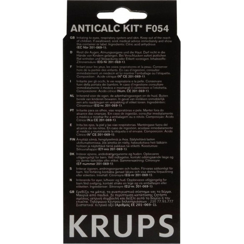 Средство для удаления накипи Krups F054001B 40 г Порошок Krups F054001B предназначен для удаления накипи в кофемашинах и кофеварках. Подходит для всех кофемашин, кофеварок и чайников для проведении процедуры очистки от накипи. Регулярная очистка обеспечивает более качественную работу и долгий срок службы прибора: проводите промывку и чистку не реже нескольких раз в год. В упаковке 2 пакетика по 40 г. Внешний вид и/или характеристики товара могут быть изменены производителем в соответствии с производственным процессом.
