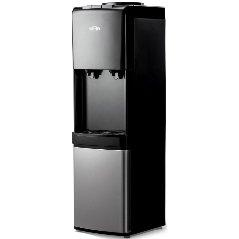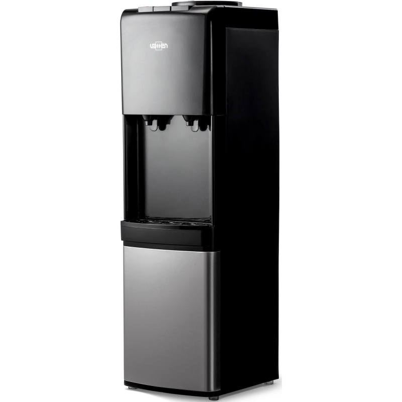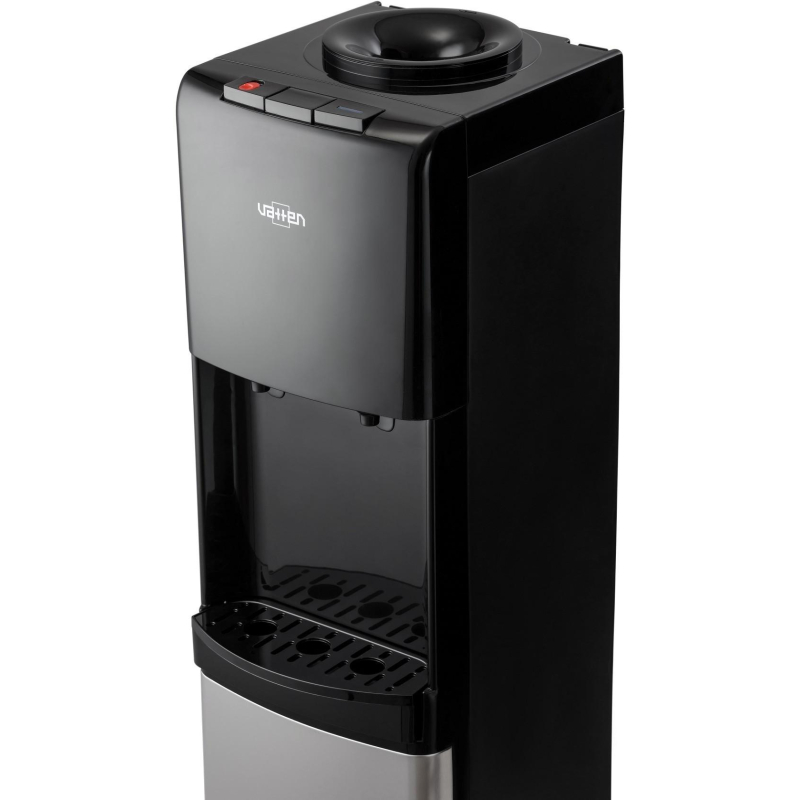 Внимание! Подключайте аппарат к электросети только после заполнения его водой! Включение аппарата без воды может привести к его выходу из строя! Кулер для воды Vatten V42NE черный (нагрев и охлаждение) Компактный напольный кулер для воды c электронным охлаждением (плата Пельтье). Без шкафчика. Современный дизайн, который подходит для дома и офиса. Бутылеприемник, верхняя и передняя панель изготовлены из высококачественного устойчивого к ультрафиолету ABS-пластика черного цвета, нижняя панель - из нержавеющей стали, боковые панели - из пластика черного цвета. Предусмотрены два крана и управление кнопками. Кран горячей воды имеет 'защиту от детей'. Пригоден для использования в очень жарком климате: температура эксплуатации кулера от 10 до 38 °C. Внимание, вокруг кулера необходимо обеспечить свободное пространство, не менее 20 см, для свободной циркуляции воздуха. В противном случае аппарат может выйти из строя. Внешний вид и/или характеристики товара могут быть изменены производителем в соответствии с производственным процессом. В кулере используется многоразовая тара.