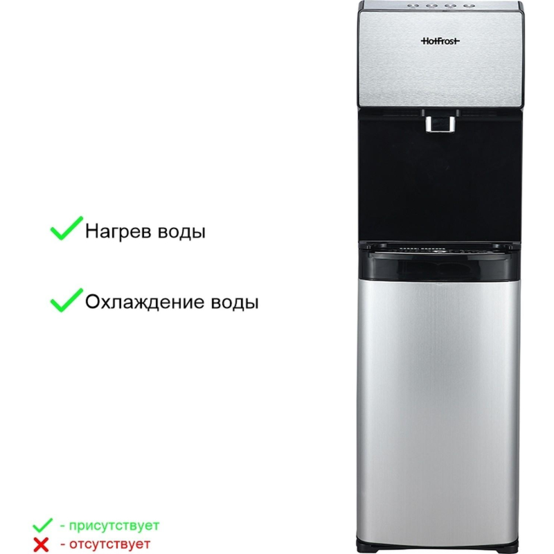 Внимание! Подключайте аппарат к электросети только после заполнения его водой! Включение аппарата без воды может привести к его выходу из строя! Кулер для воды Ecotronic P9-LX серебристый (нагрев и охлаждение) Кулер для воды Ecotronic P9-LX - стильное и функциональное устройство, предназначенное для охлаждения и нагревания воды. Основные характеристики этой модели: 1. Кулер оборудован надежной системой охлаждения, которая снижает температуру воды и помогает поддерживать ее в холодном состоянии. Температура охлаждения воды - 5 °C, производительность охлаждения - 3 л/ч. 2. Кулер может нагреть воду до 94 °C. Производительность нагрева - 5 л/ч. 3. Ecotronic P9-LX отличается стильным дизайном: корпус выполнен в благородном серебристом цвете, поэтому подойдет для установки в современные интерьеры домов и офисов. 4. Кулеры этой марки отличаются высокой энергоэффективностью, что помогает сокращать энергопотребление и экономить ресурсы. 5. Баки для горячей и холодной воды выполнены из нержавеющей стали. 6. Предусмотрена защита от протечек. 7. Кулер имеет защиту от детей, поэтому его можно устанавливать в детских учреждениях и использовать в семьях, где есть малыши. Внешний вид и/или характеристики товара могут быть изменены производителем в соответствии с производственным процессом. В кулере используется многоразовая тара.