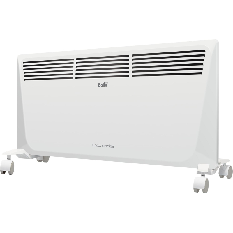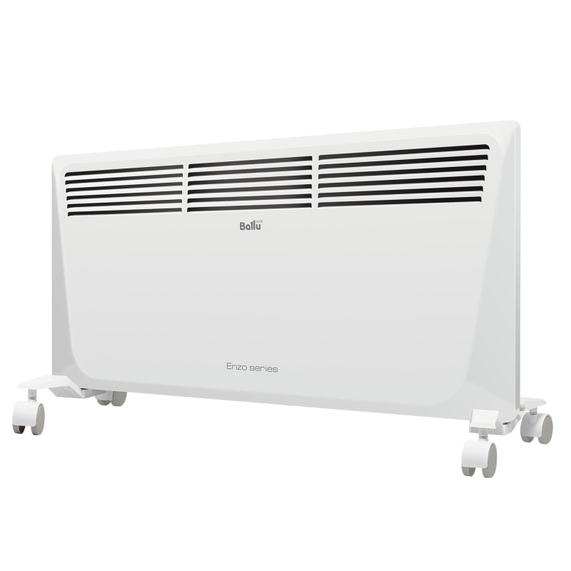 Конвектор Ballu BEC/EZER-2000 белый (2000 Вт, с терморегулятором, НС-1055674) Дизайнерские электрические конвекторы серии Enzo равномерно нагревают воздух в помещении. Монолитный нагревательный элемент нового поколения Double G-Force X-образной формы увеличивает температуру воздуха всего за 75 секунд. Многоуровневая система защиты: влагозащита IP24, родительский контроль, датчик защиты от опрокидывания и перегрева обеспечивают безопасную эксплуатацию прибора. Конвектор мобилен, его можно устанавливать там, где удобно, ведь в комплекте поставляются шасси и кронштейн. Максимальное удобство обеспечивает функция Auto Restart, которая позволяет после незапланированного отключения электроэнергии автоматически перезапустить прибор с сохраненными настройками. Эффективен для помещений, площадью до 25 кв.м. Товар относится к ценовому сегменту 'эконом'. Имеет базовые характеристики и более простую упаковку. Отвечает основным требованиям потребления. Внешний вид и/или характеристики товара могут быть изменены производителем в соответствии с производственным процессом.