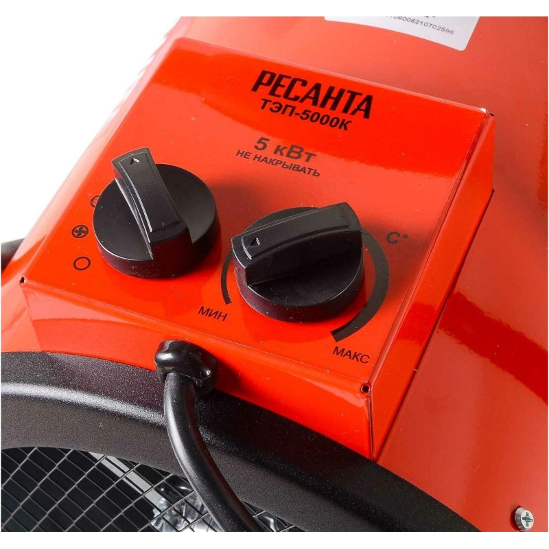 Пушка тепловая Ресанта ТЭП-5000КТепловая пушка Ресанта ТЭП-5000К идеально подойдет для поддержания комфортной температуры воздуха в жилых и нежилых пространствах площадью до 30-35 кв.м. Конструкция данного прибора, являясь электрической, не требует применения бака для хранения и камеры для сгорания топлива, что позволяет добиться полного отсутствия отработанных газов и небольших размеров самого устройства. Такое исполнение допускает эксплуатацию в помещениях, где находится множество людей, а практически бесшумная работа не потревожит пользователей в жилых домах и квартирах даже ночью. Немаловажной особенностью является также высокая скорость оборачивания воздуха, составляющая 400 м?/ч. Этот фактор зачастую бывает решающим при выборе между тепловой пушкой и другими типами обогревателей, потому что любой человек, войдя в холодное помещение, хочет как можно скорее увеличить температуру до комфортной. Прибор невероятно прост и удобен в использовании, поэтому не требует для запуска наличия каких-либо специальных знаний. Подключение к сети производится обычной бытовой вилкой, а крупные органы управления, расположенные на верхней панели, предоставляют быстрый доступ ко всем необходимым настройкам.Поставляется в комплекте с кабелем питания и вилкой.<!--noindex-->Внешний вид и/или характеристики товара могут быть изменены производителем в соответствии с производственным процессом.<!--/noindex-->